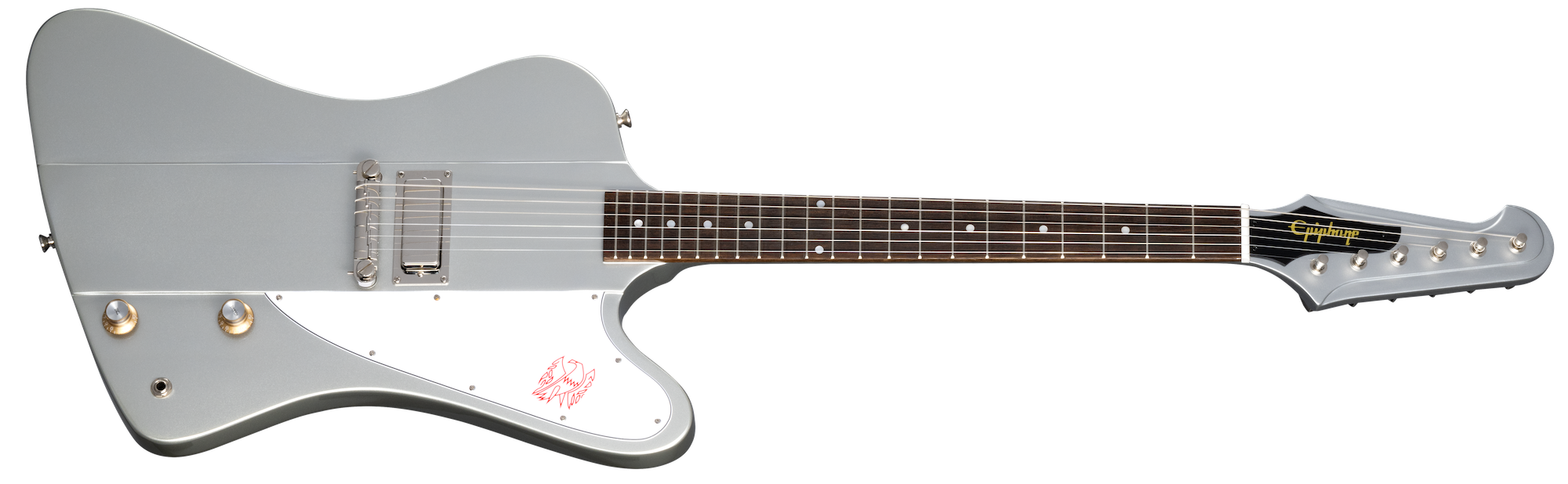 Epiphone Inspired by Gibson Custom 1963 Firebird V tilbyr vintage Firebird-spesifikasjoner til en overkommelig pris, inkludert en 9-lags gjennomgående hals i mahogni og valnøtt, med mahogni "vinger" på hver side av kroppen. Kluson planetgir-"banjo"-stemmeskruer holder strengene på plass ved hodet, mens en Epiphone ABR-bro og en ny redesignet Maestro Vibrola med inngravert Epiphone-logo holder alt stødig i den andre enden. Elektronikken er også førsteklasses og inkluderer Gibson USA Firebird mini-humbucker-pickuper med Alnico 5-magneter, CTS-potentiometre, Mallory-kondensatorer og en Switchcraft 3-veis pickupvelger-bryter og 1/4" utgangskontakt, som gir denne imponerende rekreasjonen ikke bare utseendet, men også lyden til en klassisk Firebird V. Et Epiphone Inspired by Gibson Custom hardcase-etui er også inkludert.