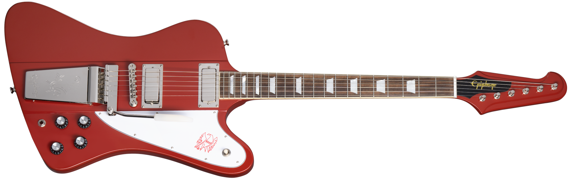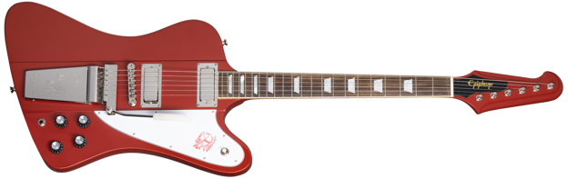Da den ble lansert i 1963, var Firebird Gibsons første modell med gjennomgående halsdesign, og den ble raskt brukt av musikere i mange sjangre, inkludert blueslegenden Johnny Winter, Keith Richards og Brian Jones fra The Rolling Stones, Eric Clapton, og Phil Manzanera fra Roxy Music, for å nevne noen. Epiphone Inspired by Gibson Custom 1963 Firebird V tilbyr vintage Firebird-spesifikasjoner til en overkommelig pris, inkludert en 9-lags gjennomgående hals i mahogni og valnøtt, med mahogni "vinger" på hver side av kroppen. Kluson planetgir-"banjo"-stemmeskruer holder strengene på plass ved hodet, mens en Epiphone ABR-bro og en ny redesignet Maestro Vibrola med inngravert Epiphone-logo holder alt stødig i den andre enden. Elektronikken er også førsteklasses og inkluderer Gibson USA Firebird mini-humbucker-pickuper med Alnico 5-magneter, CTS-potentiometre, Mallory-kondensatorer og en Switchcraft 3-veis pickupvelger-bryter og 1/4" utgangskontakt, som gir denne imponerende rekreasjonen ikke bare utseendet, men også lyden til en klassisk Firebird V. Et Epiphone Inspired by Gibson Custom hardcase-etui er også inkludert.