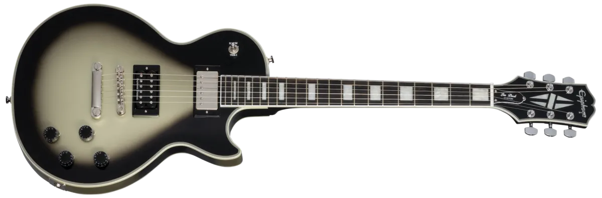 Pickup-konfigurasjonen består av en reverse-montert Epiphone ProBucker Custom i halsposisjon og en Seymour Duncan Distortion i bro. Begge er koblet til CTS-potensiometre og Orange Drop-kondensatorer for presis og stabil kontroll over 2 volum- og 2 tonekontroller. LockTone Tune-O-Matic-bro og Stop Bar-tailpiece sikrer stabil intonasjon og sustain. Finishen er Antique Silverburst, inspirert av Adam Jones’ originale 1979 Les Paul Custom.