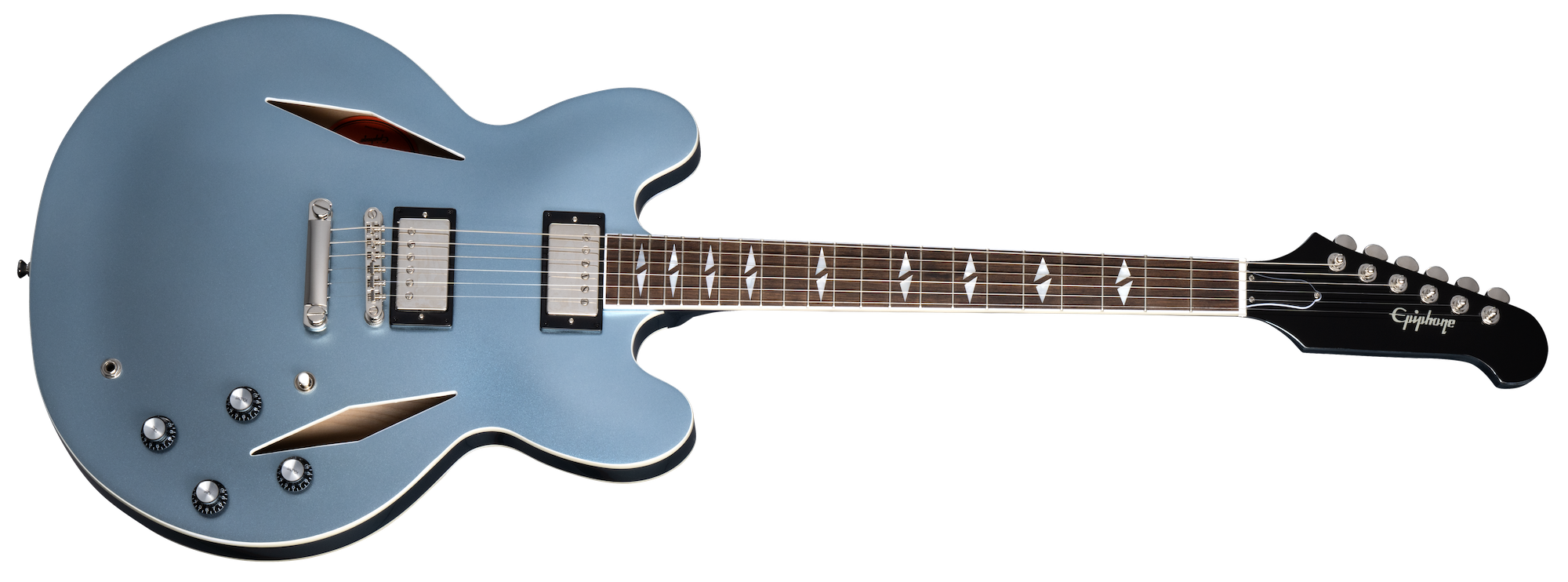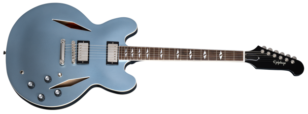 Nå er Epiphone ekstremt stolte over å igjen samarbeide med Gibson Custom ved lanseringen av Dave Grohl DG-335. Den har kombinasjonen av ES-335 og Trini Lopez spesifikasjoner Dave etterspurte og som fansen forventer, inkludert en semi-hollow EST-kropp med diamantformede lydhull med binding, en mahognihals i ett stykke med elliptisk profil, Trini Lopez-style headstock med Grover Mini Rotomatic-tunere, laurel gripebrett og split diamant inlays. Pickupene er Daves foretrukne Gibson USA Burstbucker T-modeller, med en Burstbucker 2 i hals og en Burstbucker 3 i stolposisjon. CTS potensiometre, Mallory kondensatorer og en Switchcraft 3-veis vippebryter og 1/4" jackutgang. Dette er en av de mest etterspurte modellene i Epiphones historie, så vi er i ekstase over å kunne tilby Denne eksepsjonelle gitaren for gitarister over hele verden. En Epiphone Dave Grohl hardshell-case er også inkludert.