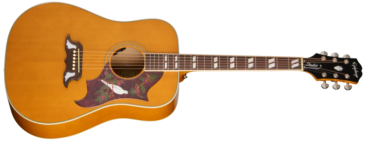 Epiphone Dove Studio er en del av Epiphone Studio Acoustic Collection og er inspirert av den ikoniske Gibson Dove – Gibsons andre square shoulder dreadnought-design fra tidlig 60-tall. Modellen kombinerer klassisk estetikk med moderne funksjonalitet og passer både nybegynnere og erfarne gitarister.
