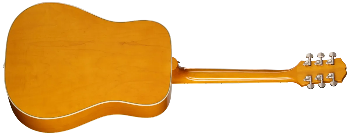 Visuelle detaljer inkluderer Dove-pickguard med grafikk, 60-talls Kalamazoo-inspirert headstock med Epiphone-logo og Gibson Crown i mother of pearl, samt Grover Rotomatic stemmeskruer for presis og stabil stemming.