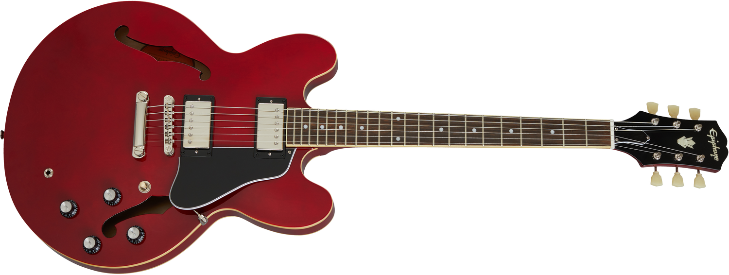 Epiphone ES-335 er en moderne hyllest til den legendariske Gibson ES-335, kjent for sin varme, fyldige tone og ikoniske semi-hollow lyd. Denne modellen kombinerer klassisk 50-talls design med pålitelig Epiphone-kvalitet, og gir gitarister den ekte ES-følelsen til en tilgjengelig pris. Kroppen i laminert lønn med senterblokk i hel lønn gir balansert sustain og kontrollert resonans, perfekt for alt fra blues og soul til rock og pop.