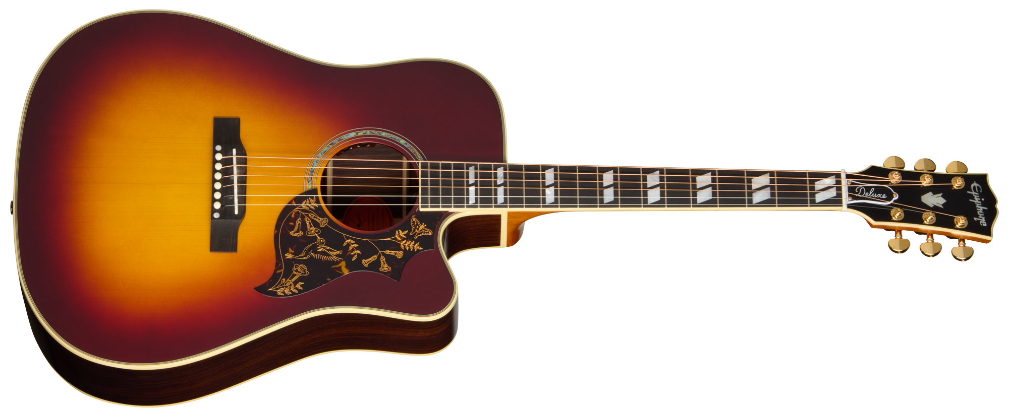 Epiphone Hummingbird Deluxe EC AB kombinerer ikonisk Hummingbird design med moderne cutaway og premium materialer.