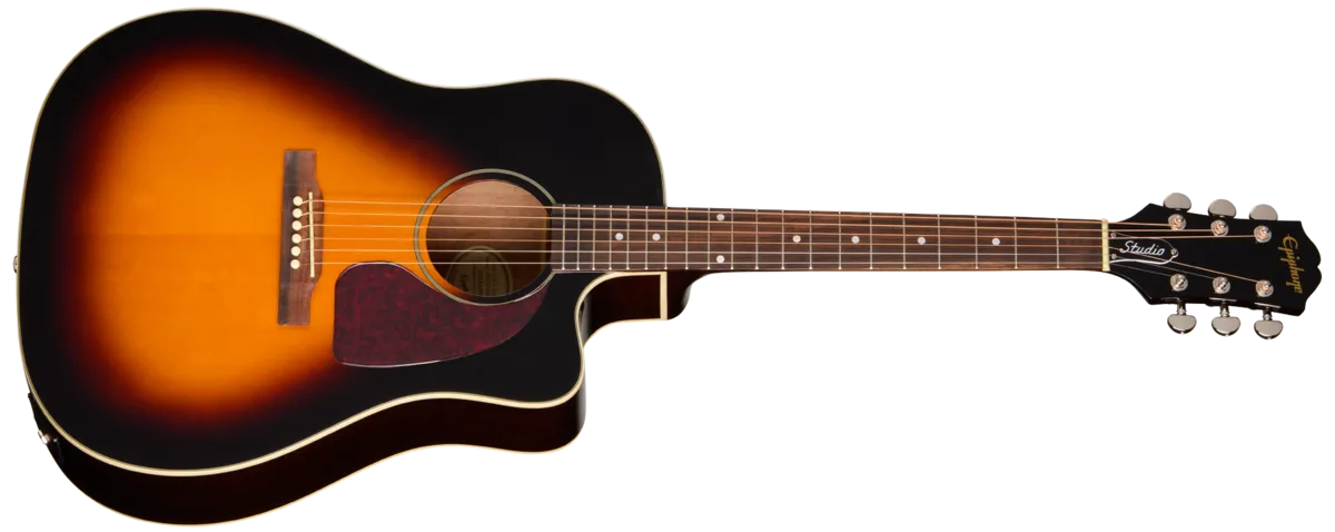 Epiphone J-45 Studio EC er en videreutvikling av den klassiske J-45-designen og en del av Epiphone Studio Acoustic Collection. Modellen kombinerer sloped shoulder-kropp med cutaway og 24.75" skala, og er utviklet for både nybegynnere og erfarne gitarister som ønsker klassisk uttrykk og moderne funksjonalitet.