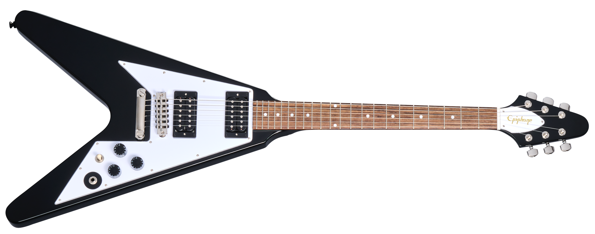 Epiphone Kirk Hammett 1979 Flying V er en nøyaktig gjenskapning av gitaren som bidro til å definere Metallicas tidlige lyd. Basert på Kirk Hammetts første Gibson, er denne modellen utviklet i samarbeid med Gibson Custom Shop og henter inspirasjon fra den originale gitaren som ble brukt på album som Kill 'Em All, Master of Puppets og The Black Album.