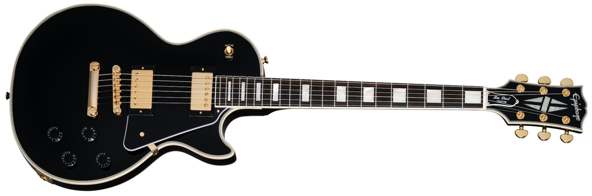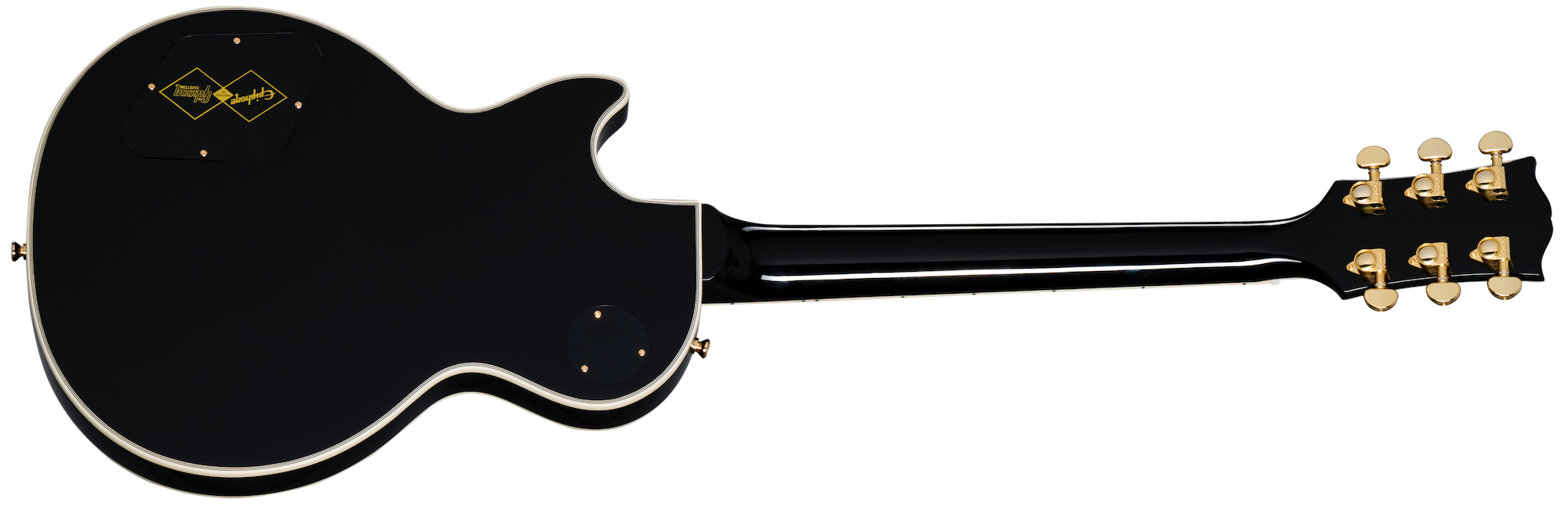 Med alle de elegante "tuxedo"-detaljene som modellen er kjent for, har denne vakre gitaren en hals i ett stykke mahogni med en 50-talls avrundet C-profil, ibenholt gripebrett, og innlegg i mor-bek-inl i blokkform på gripebrettet. Det er også mor-bek-inl innlegg med splittet diamant og Epiphone-logo på hodeplaten i Gibson-stil "open book"-design. Forgylte Grover Rotomatic-stemmeskruer med 18:1 utveksling gir ekstra visuell appell. Kroppen i solid mahogni har en lønnetopp for et snev av ekstra tonebitt, mens Gibson USA 490R- og 498T-pickuper gir sofistikert tone og kraft til å matche skjønnheten. De er håndkoblet til CTS-potentiometere, en Switchcraft utgangskontakt og pickup-velger, samt Mallory M-kondensatorer. Et "Inspired by Gibson Custom"-logo med dobbel diamant pryder baksiden av hodet, og gitaren leveres med et svart hardt skall-etui med "Inspired by Gibson Custom"-logo og gyllent interiør.