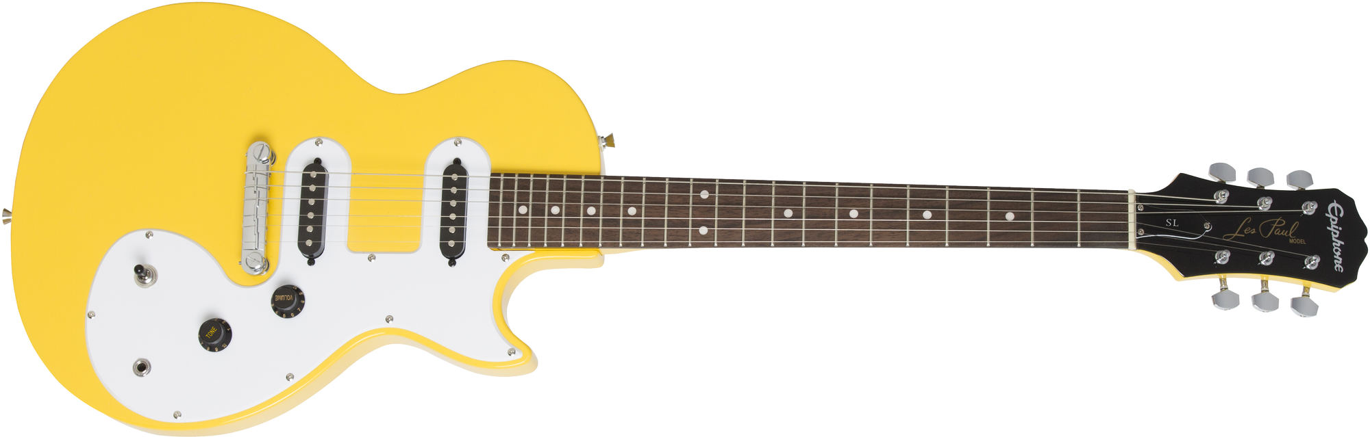 Epiphone presents the Les Paul SL™, the most affordable 2-pickup Les Paul ever made with a slim lightweight Poplar body with powerful Epiphone Ceramic pickups. Available in six exclusive colors—Ebony, Heritage Cherry Sunburst, Pacific Blue, Sunset Yellow, Turquoise, and Vintage Sunburst.