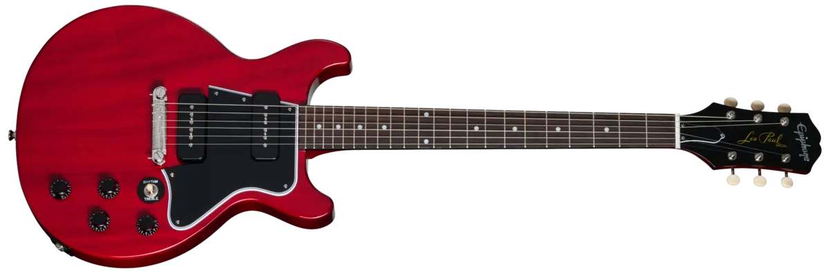 Epiphone Les Paul Special Double Cut er en klassisk elgitar inspirert av de ikoniske modellene fra tidlig 1960-tall. Med double cutaway-design og to P-90-pickuper kombinerer den vintage estetikk med fleksibel klang og god spillbarhet.