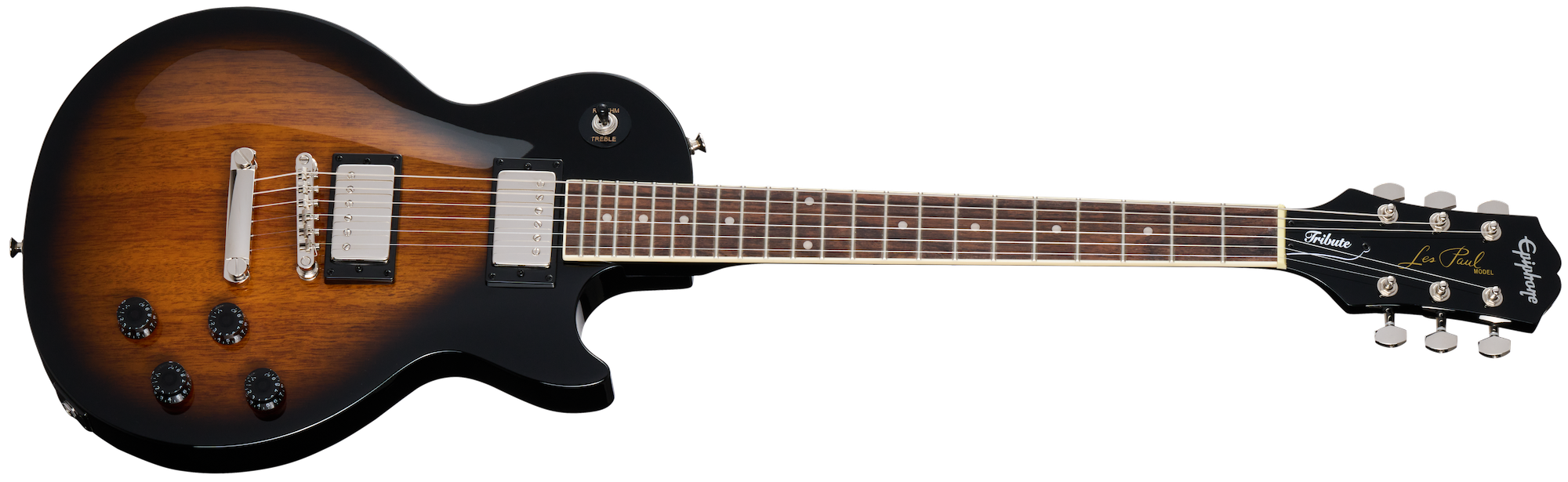 Les Paul Tribute har alle de klassiske Les Paul-funksjonene som har gjort dette ikoniske instrumentet til en verdensomspennende favoritt i flere tiår. Den har en utskåret mahogni-topp, kraftige Epiphone 650R- og 700T-keramiske humbuckere med nikkeldeksler, og en mahogni-hals med gripebrett i laurbærtre og et brukervennlig avsmalnet halsfeste. Det er en enkel gitar med all spillbarhet og tone du forventer fra en Les Paul. Tilgjengelig i flere fargealternativer og også som venstrehåndsversjon. En valgfri gigbag er også tilgjengelig