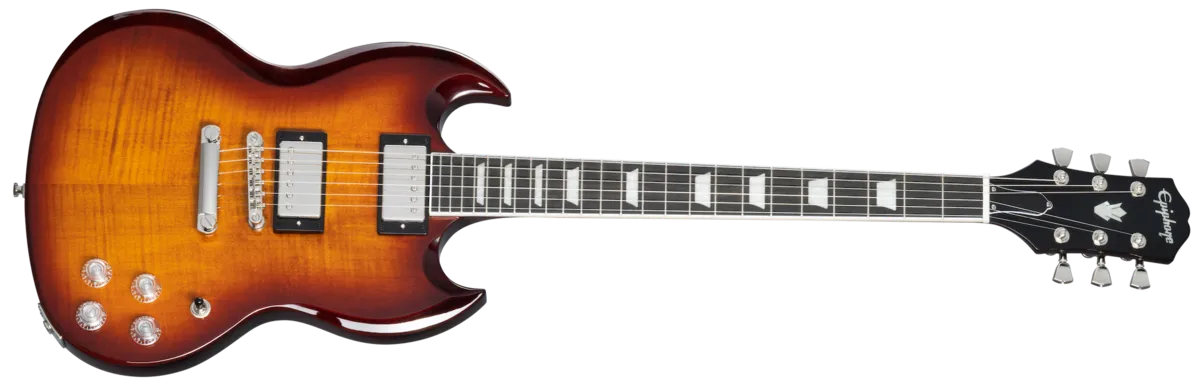 Epiphone SG Modern Figured med AAA flame maple, ProBucker 2/3 og 24 bånd