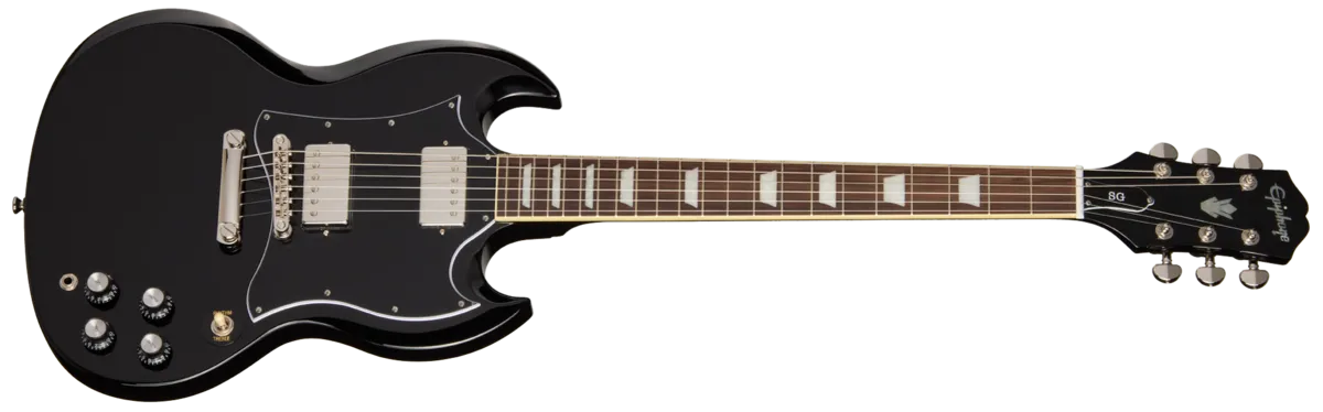 Epiphone SG Standard er en klassisk elgitar fra Inspired by Gibson-serien som gjenskaper den ikoniske SG-modellen kjent for sitt karakteristiske design, lette kropp og kraftige tone. Modellen har vært brukt av en rekke legendariske gitarister og er fortsatt en favoritt i mange musikksjangre.