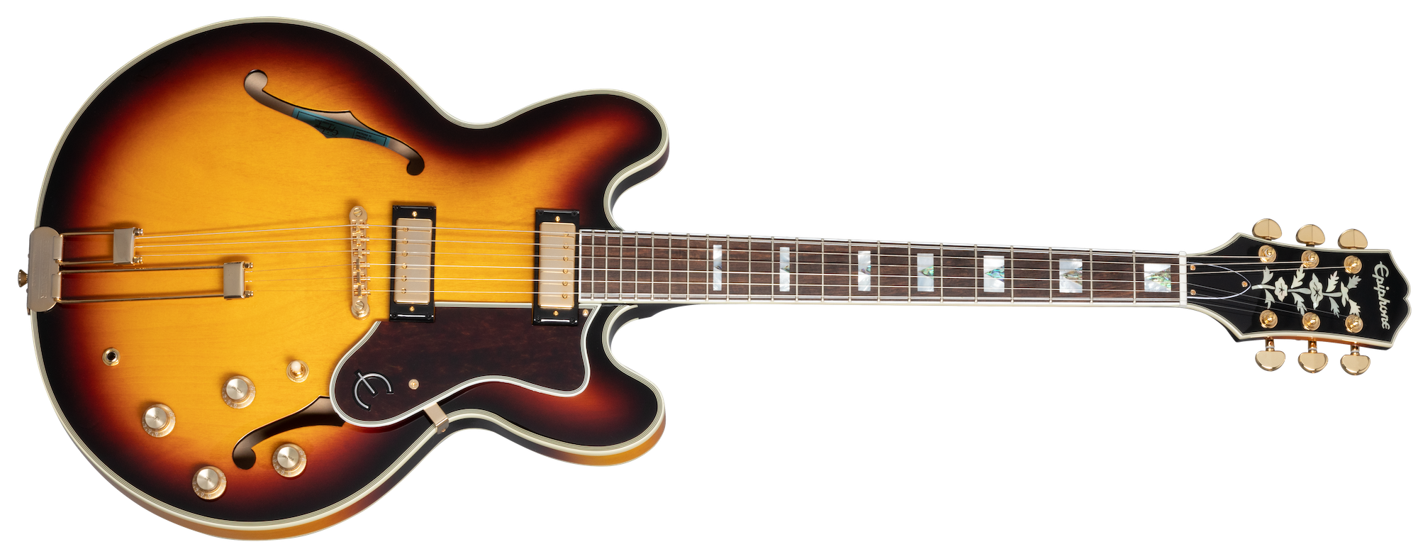 Epiphone Sheraton er en legendarisk semi-hollow gitar som kombinerer tidløs eleganse med allsidig tone. Denne utgaven i Vintage Sunburst leverer både stil og lydkvalitet tilpasset alt fra jazz og blues til rock og pop.