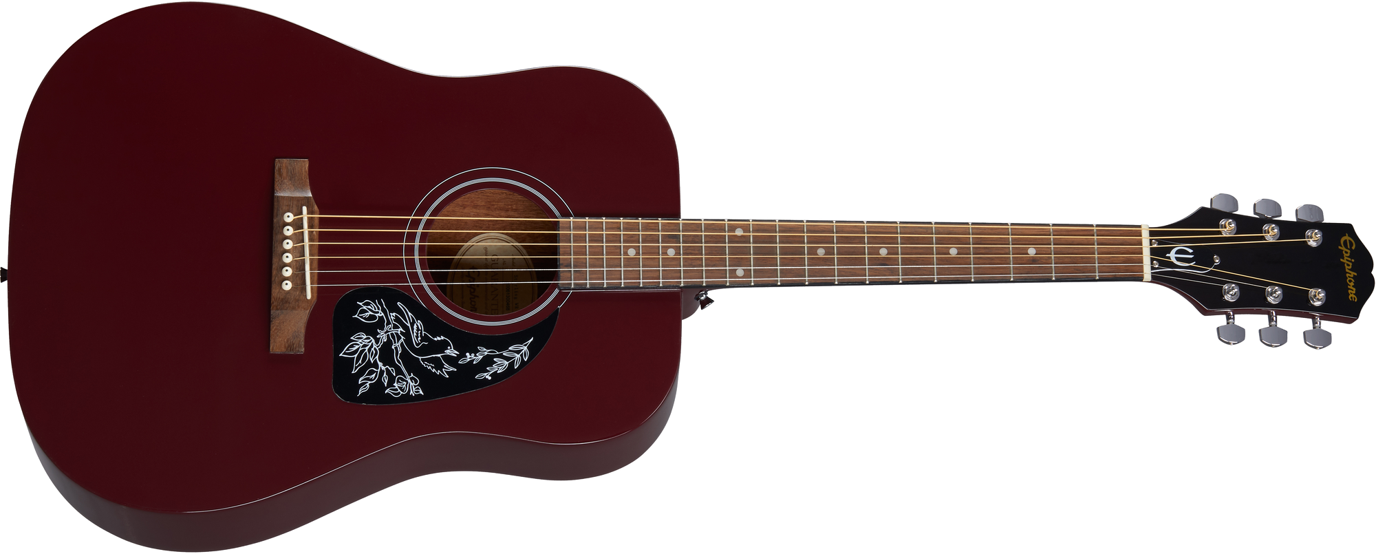 Everything You Need to Begin Your Musical JourneyThe Starling is perfect for beginning players to learn guitar on, and it is available at a price point that makes it possible for everyone to afford a quality Epiphone instrument. The back and sides are layered mahogany, while the top is layered spruce for durability and good tone. The mahogany neck has a comfortable C-shaped profile, and the Indian laurel fretboard features 20 medium jumbo frets that make it easier to press the strings down with less effort, while the 24.75” scale length results in slightly less string tension and also reduces the distance the player’s fingers have to “stretch” to form chord shapes. The pickguard features a unique and distinctive Starling graphic. All the accessories you need are also included: an Epiphone gig bag, three picks, a strap, and even a clip-on electronic tuner.
