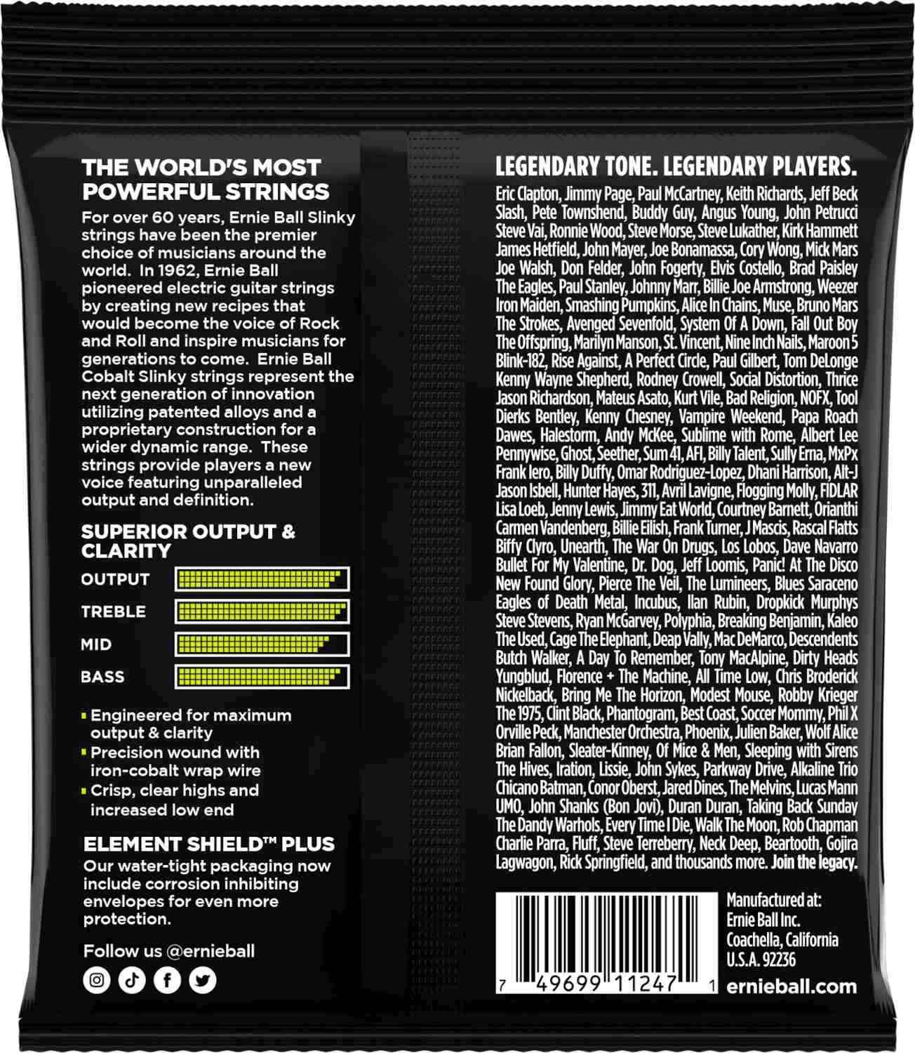 Ernie Ball 3721 3-pack Regular Slinky Cobalt er en pakkeløsning med tre komplette strengesett for elgitar i tykkelsen 10–46. Disse strengene er utviklet for gitarister som ønsker høy output, bred frekvensrespons og en spillfølelse med god dynamikk og myk bøyemotstand.