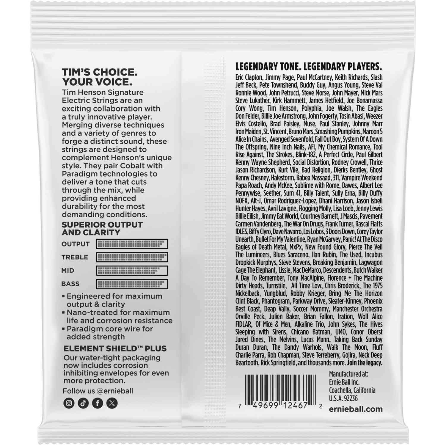 Tim Hensons signaturstrenger er resultatet av et spennende og dyptgående samarbeid mellom Ernie Ball og Tim Henson selv, kjent som en innovativ og utrolig teknisk gitarist. Ved å blande teknikker og kombinere ulike sjangre har Tim skapt sin høyst unike og personlige stil.