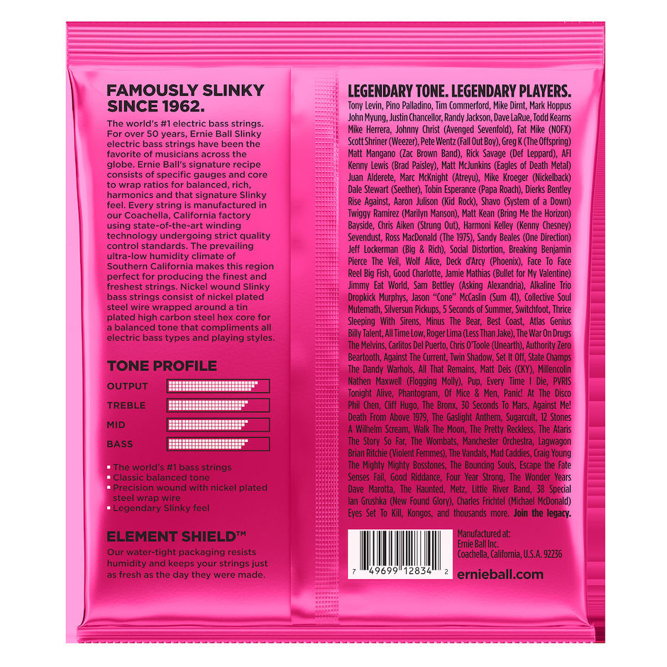 Ernie Ball Regular Slinky Bass Strings er klassisk roundwound-strenger lagd for å gi maksimal klarhet og en bra porsjon output. Kjernen er av beste kvalitet stål og er spunnet med en nikkelplettert ståltråd. Disse strengene passer de fleste musikkstiler og listen med artister som bruker disse kan gjøres lang.