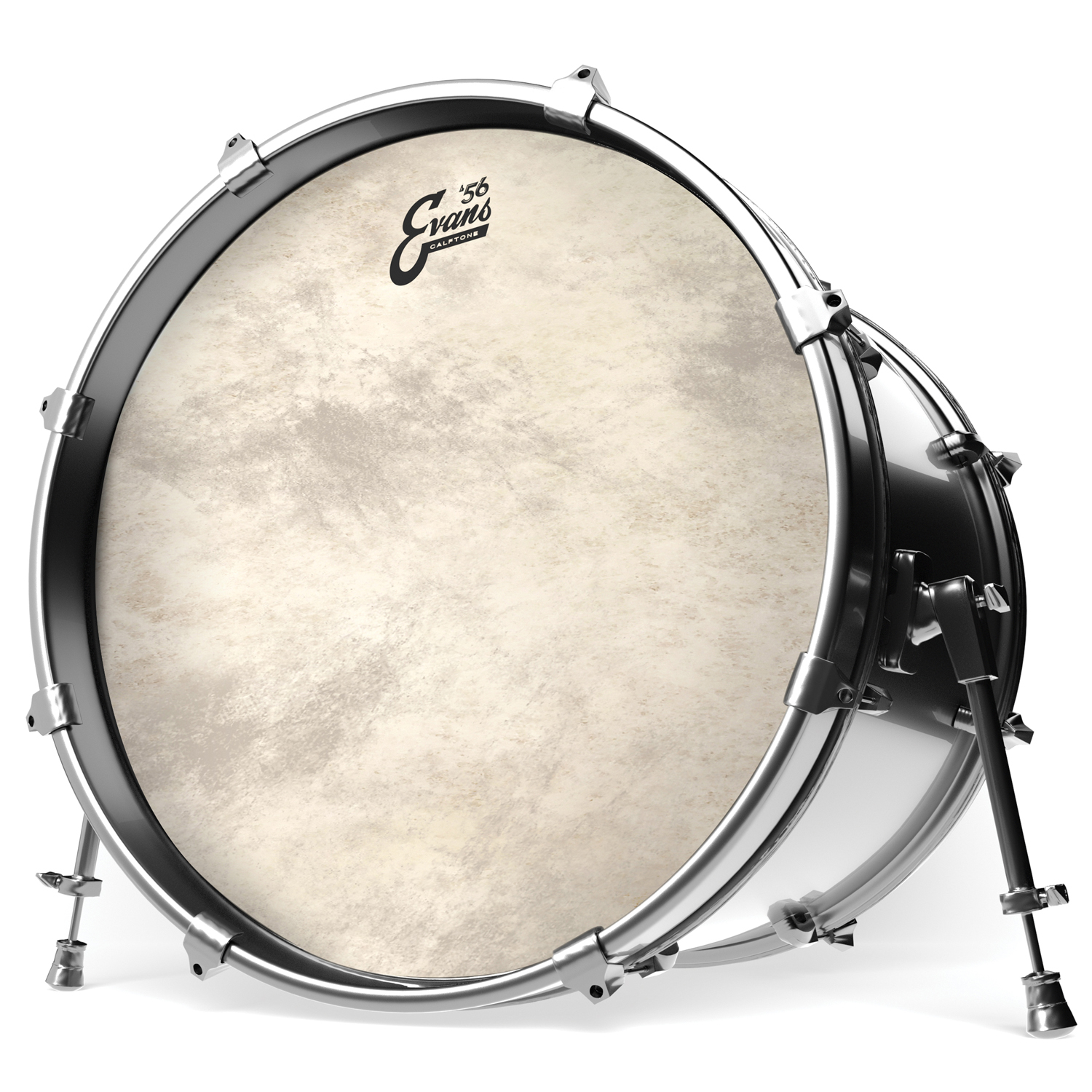 Evans Calftone Basstrommeskinn 20 BD20CT. Calftone basstrommeskinn er et enkeltlagsskinn med en 12-mil tykk film og passer både som slagskinn og som frontskinn. De ser ut, føles og låter som et kalveskinn, men de er et moderne Evans skinn med Level 360 teknologi. Evans laget de første syntetiske trommeskinnene i 1956. Før det var skinnene naturskinn som låt bra, men som holdt dårlig på stemmingen og var følsomme for både fuktighet og støt. Så da Evans introduserte holdbare skinn som holdt på stemmingen, var dette en mindre revolusjon. Imidlertid har lydidealet fra kalveskinn levd videre og utseendet forfiner de fleste trommesett. Nå, seksti år senere, presenterer Evans Calftone. Skinn som med hjelp av moderne teknologi, nye plastfilmer og Level 360, tilbyr den kjente, varme kalveskinnlyden kombinert med kvalitet og holdbarhet. Calftone basstrommeskinn tilbys i tre varianter: Standard udempet, EQ4 med innvendig dempering og EMAD med sine 2 utbyttbare demperinger. Alle varianter tilbys i størrelser fra 16 til 26 .
