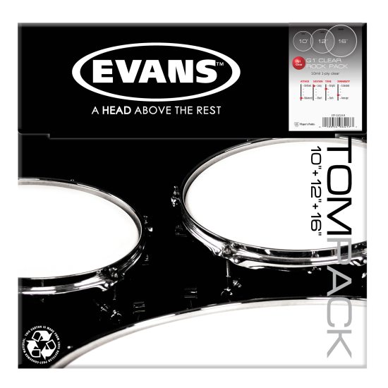 Evans Tom-Pack ETP-G2CLR-F. Pakke med Clear G2 tom-tom skinn. Fusion inneholder: 1 x 10 , 1 x 12 , 1 x 14 . G2 er et 2-lags skinn som gir deg fokusert tone og holdbarhet. G2-skinnene takler både lav og høy stemming og gir en fokusert tone med lett kontrollert etterklang. De er skinnvalget til både Dennis Chambers og Tomas Haake blant mange andre . Velg Clear hvis du vil ha en mykere attakk..