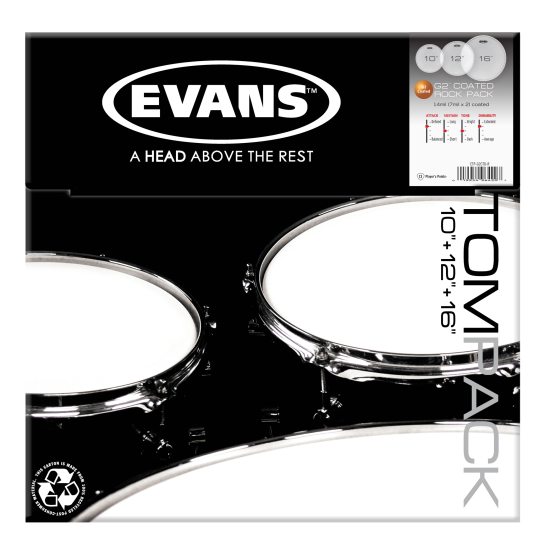 Evans Tom-Pack ETP-G2CTD-R. Pakke med Coated G2 tom-tom skinn. Rock inneholder: 1 x 10 , 1 x 12 , 1 x 16 . G2 er et 2-lags skinn som gir deg fokusert tone og holdbarhet. G2-skinnene takler både lav og høy stemming og gir en fokusert tone med lett kontrollert etterklang. De er skinnvalget til både Dennis Chambers og Tomas Haake blant mange andre . Velg Clear hvis du vil ha en mykere attakk..