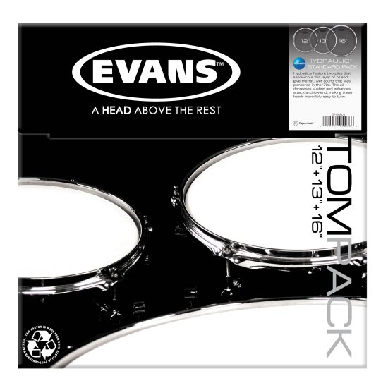 Evans Tom-Pack ETP-HYDGL-S. Pakke med Hydraulic Glass tom-tom skinn. Standard inneholder: 1 x 12 , 1 x 13 , 1 x 16 . Et ekte 2-lags oljeskinn med en fet og komprimert lyd, som gir fyldig lyd selv i ekstremt lav stemming. Slitesterkt skinn med 70-talls lyd og fet attakk.