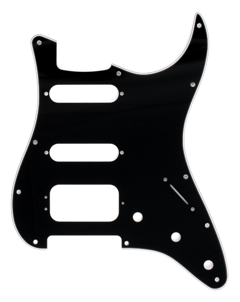 This three-ply black pickguard fits HSS Stratocaster models, including most American, American Standard, Hot Rod, American Deluxe, Lonestar, Fat Strat®, Standard, Deluxe and Classic Series '70s models.