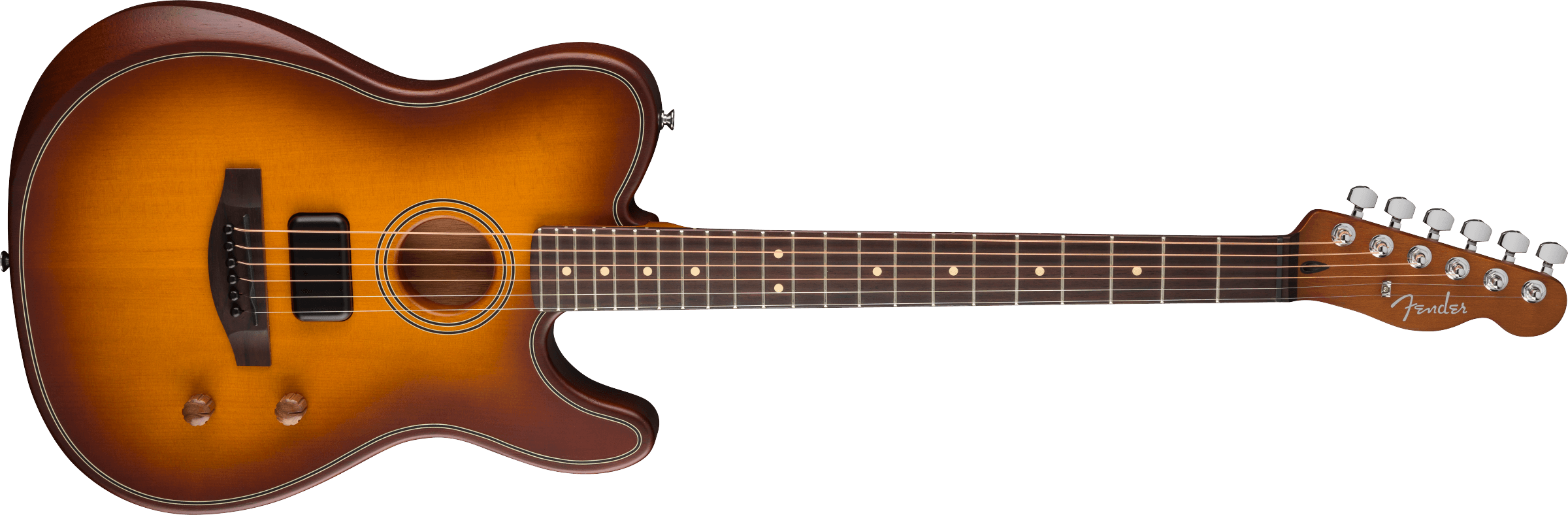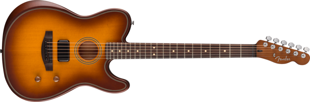 Acoustasonic Standard Telecaster kombinerer akustiske og elektriske uttrykk i ett og samme instrument. Den massive toppen i Sitka-gran og det helkammrede nyatoh-kroppen gir en resonant og naturlig lyd, mens det innovative elektroniske systemet – utviklet av Fender og Fishman – gir sømløs kontroll over klangspektrumet. Spillbarheten er umiskjennelig Fender, med konturert kropp og gripebrett i rosentre.