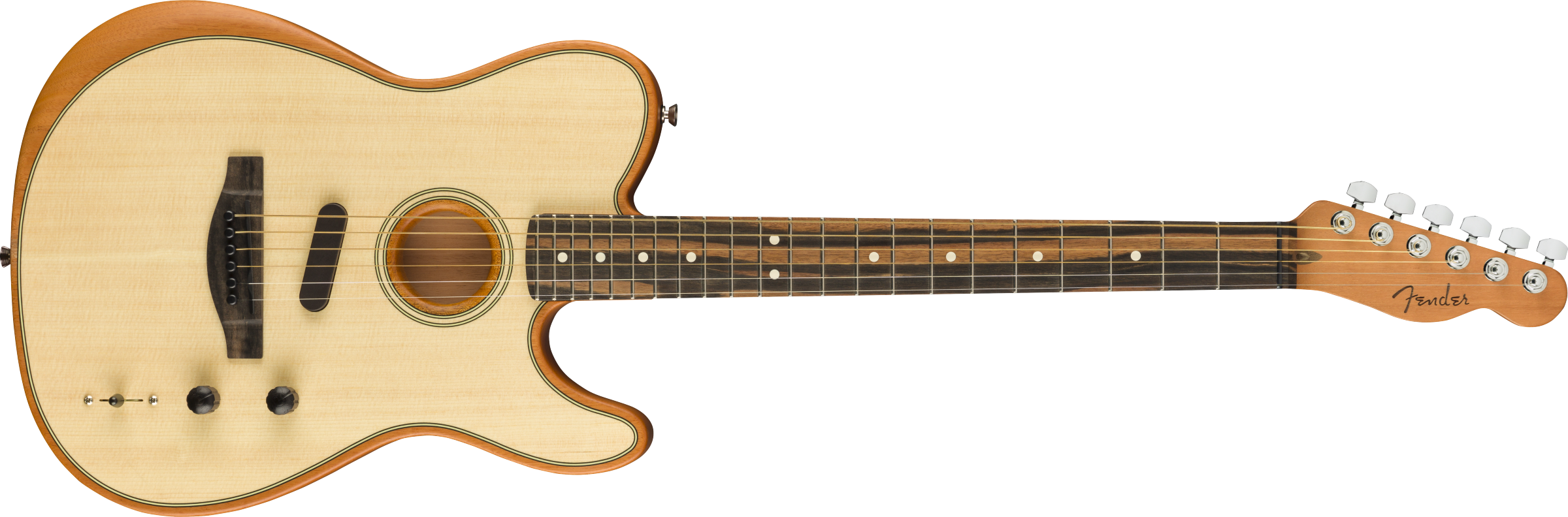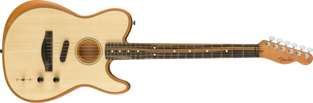 The American Acoustasonic® Telecaster® embodies the spirit of purposeful innovation that Fender was built on. From acoustic shape-shifting to electric rhythm tones, this powerful guitar uses a revolutionary Fender and Fishman®-designed Acoustic Engine to deliver new sonic expression from the studio to the stage.