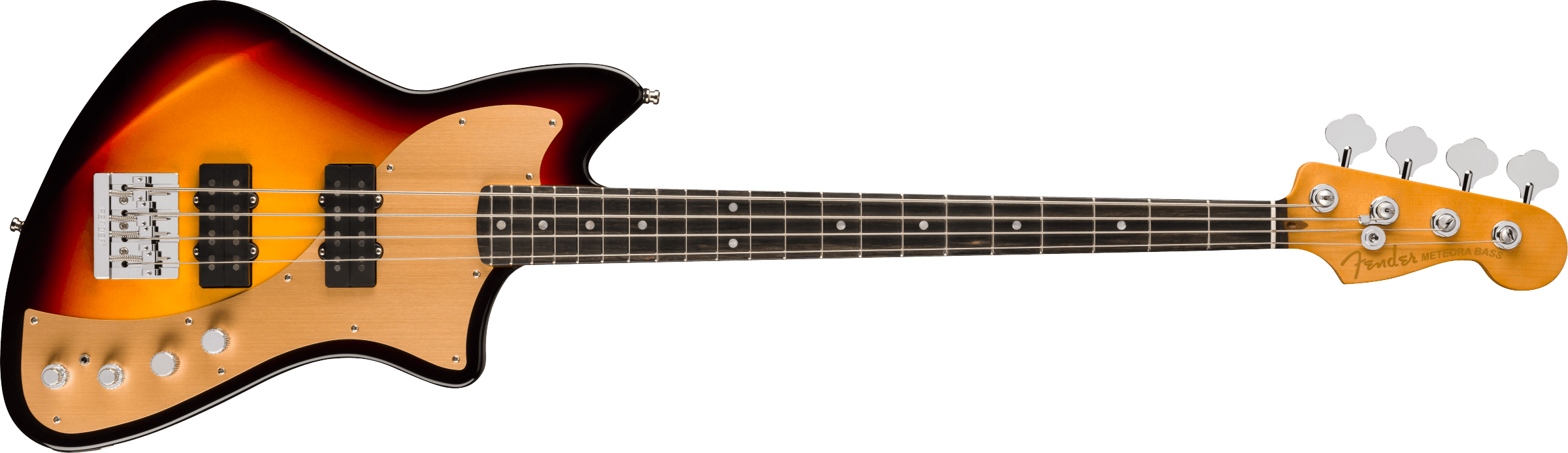 Fender American Ultra II Meteora Bass har en utvalgt or-kropp med skulpturerte kroppskonturer. For enkel spillbarhet har kvartskåret lønnehals vår Moderne D-profil og jevne Ultra Satin-finish. Ibenholt- eller kvartskåret lønnefingerbrett med 10"-14" compound radius har Ultra rullede kanter, medium-jumbo bånd, Luminlay-sidepunkter og Graph Tech TUSQ-nøtter. Den avsmalnende halshelningen og de skulpturerte kroppskonturene gir enestående tilgang til de høyere registrene, mens truss rod-tilgang på hodet gir praktisk og enkel oppsett og justering.