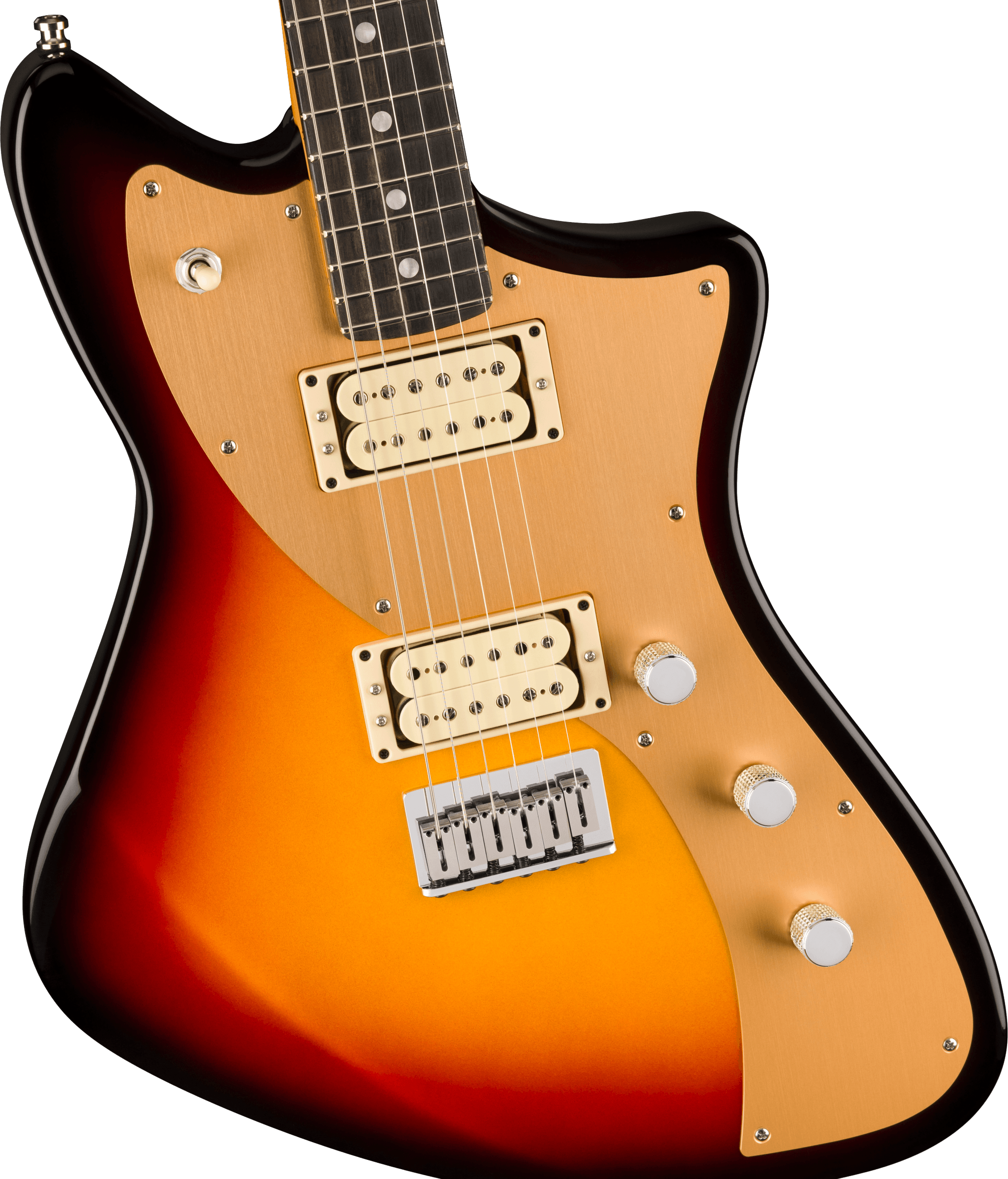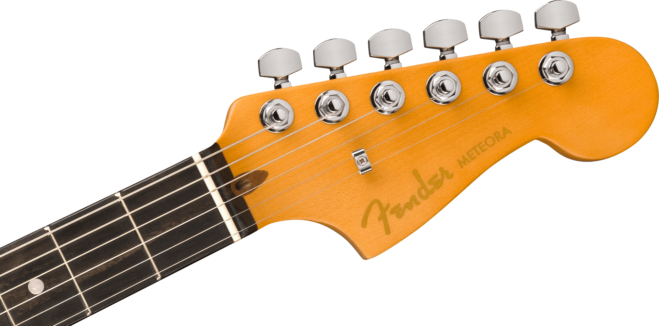 Fender American Ultra II Meteora har en utvalgt almekropp med skulpturerte kroppskonturer. For enkel spillbarhet har halsen i kvartskåret lønn vår Moderne D-profil og jevn Ultra Satin-finish. Ebony- eller kvartskåret lønn fingerbrett med en 10"-14" compound radius har Ultra avrundede kanter, medium-jumbo bånd, Luminlay sidepunkter og Graph Tech TUSQ-muttere. Den avsmalnende halsfoten og de skulpturerte kroppskonturene gir enestående tilgang til de høyere registerne.