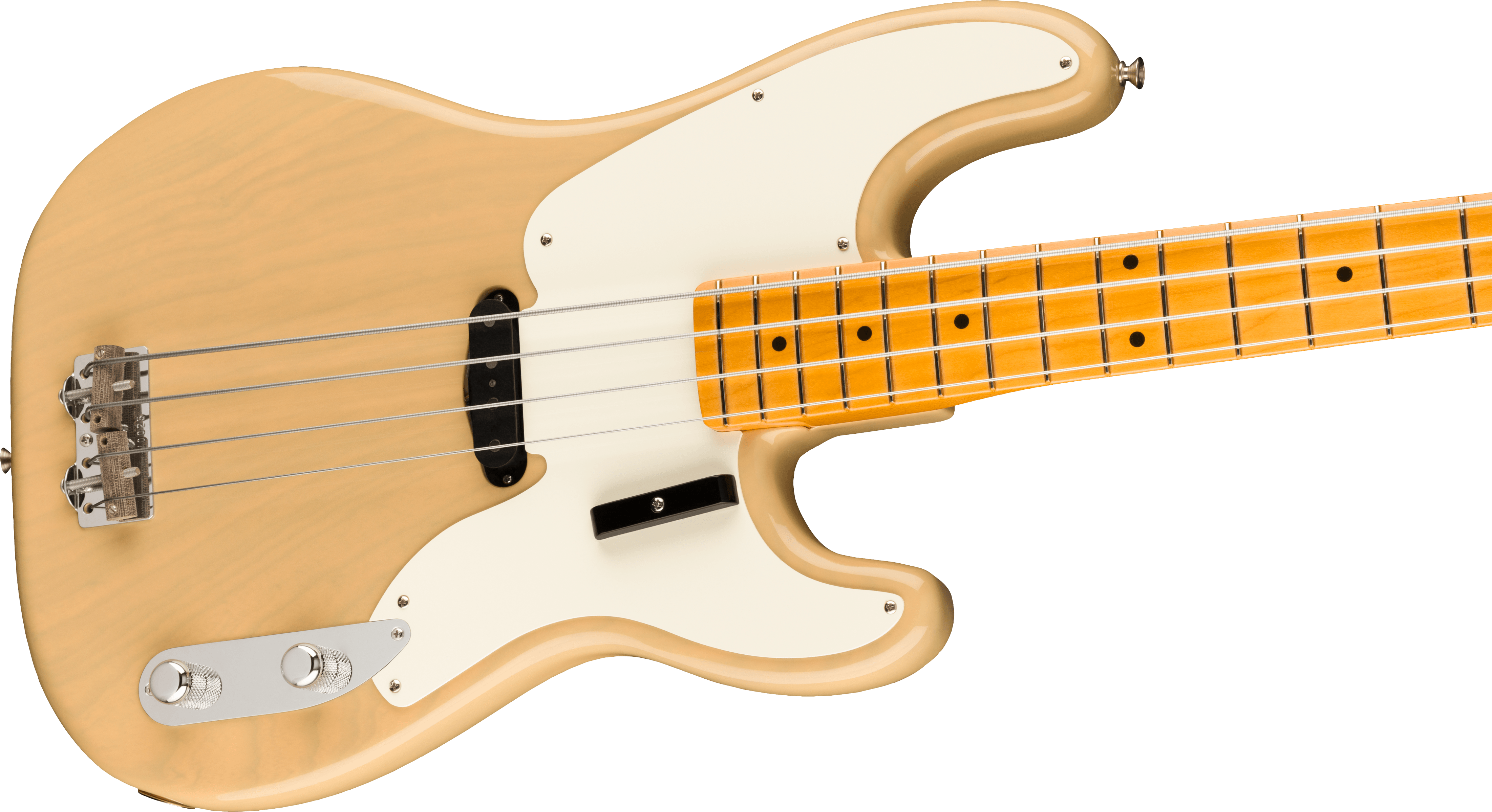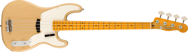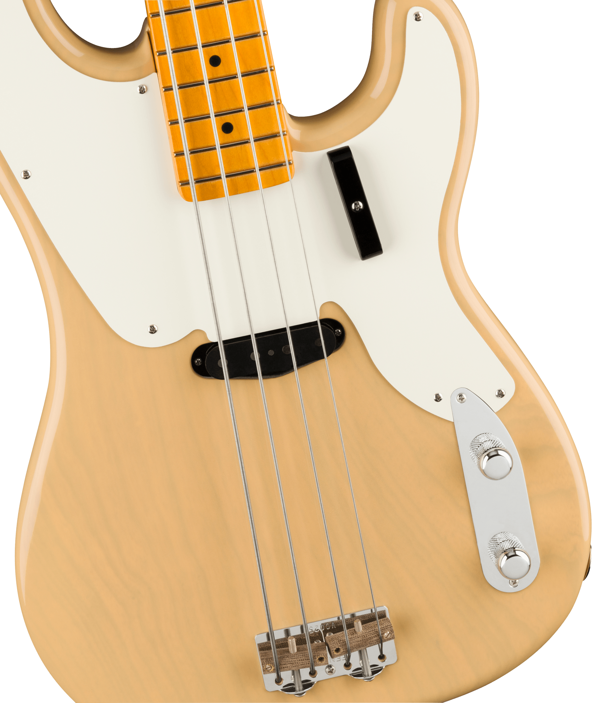 Other key features include a substantial ‘54 “C”-shape maple neck with a 7.25” radius fingerboard and vintage tall frets. The Pure Vintage 2-saddle bridge with fiber saddles, reverse open-gear tuners, finger rest and '54 Single-Coil Precision Bass® pickup deliver classic Fender thump and style.