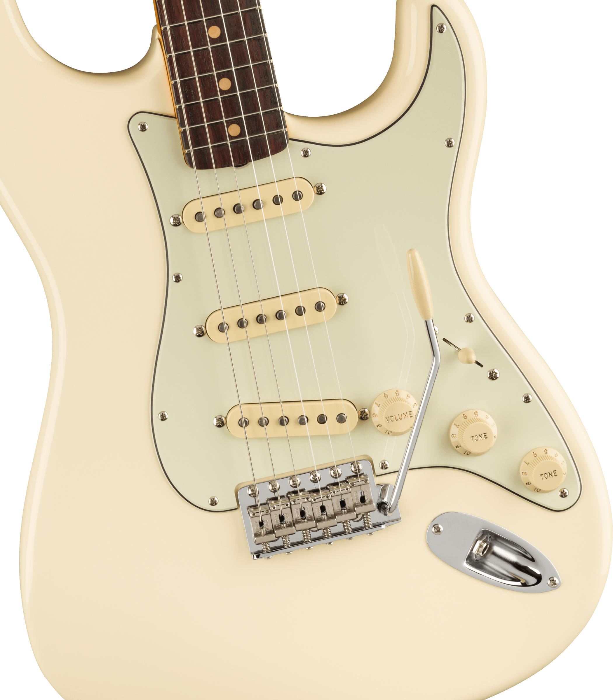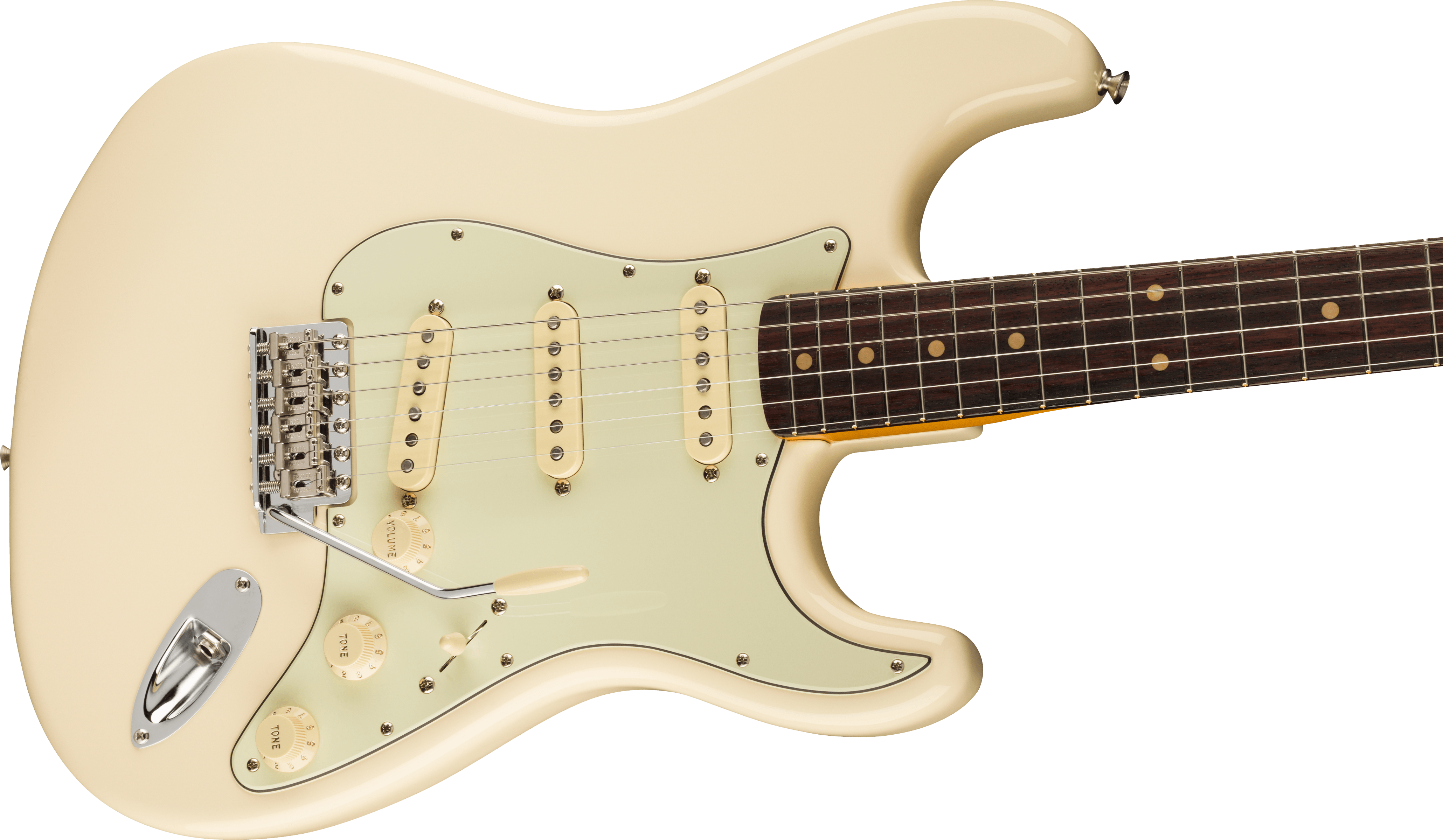 American Vintage II 1961 Stratocaster har en førsteklasses orkropp, en trio av Pure Vintage 1961 Stratocaster-pickuper og en middels "C"-formet lønnehals sammen med et gripebrett i rosentre med en radius på 7,25 tommer, og gjengir den typiske tonen og følelsen til originalen. Den inkluderer også en vintage synkronisert tremolo med stålblokk og bøyde stålsadler, single-line "Fender Deluxe" tunere og 3-lags pickguard.