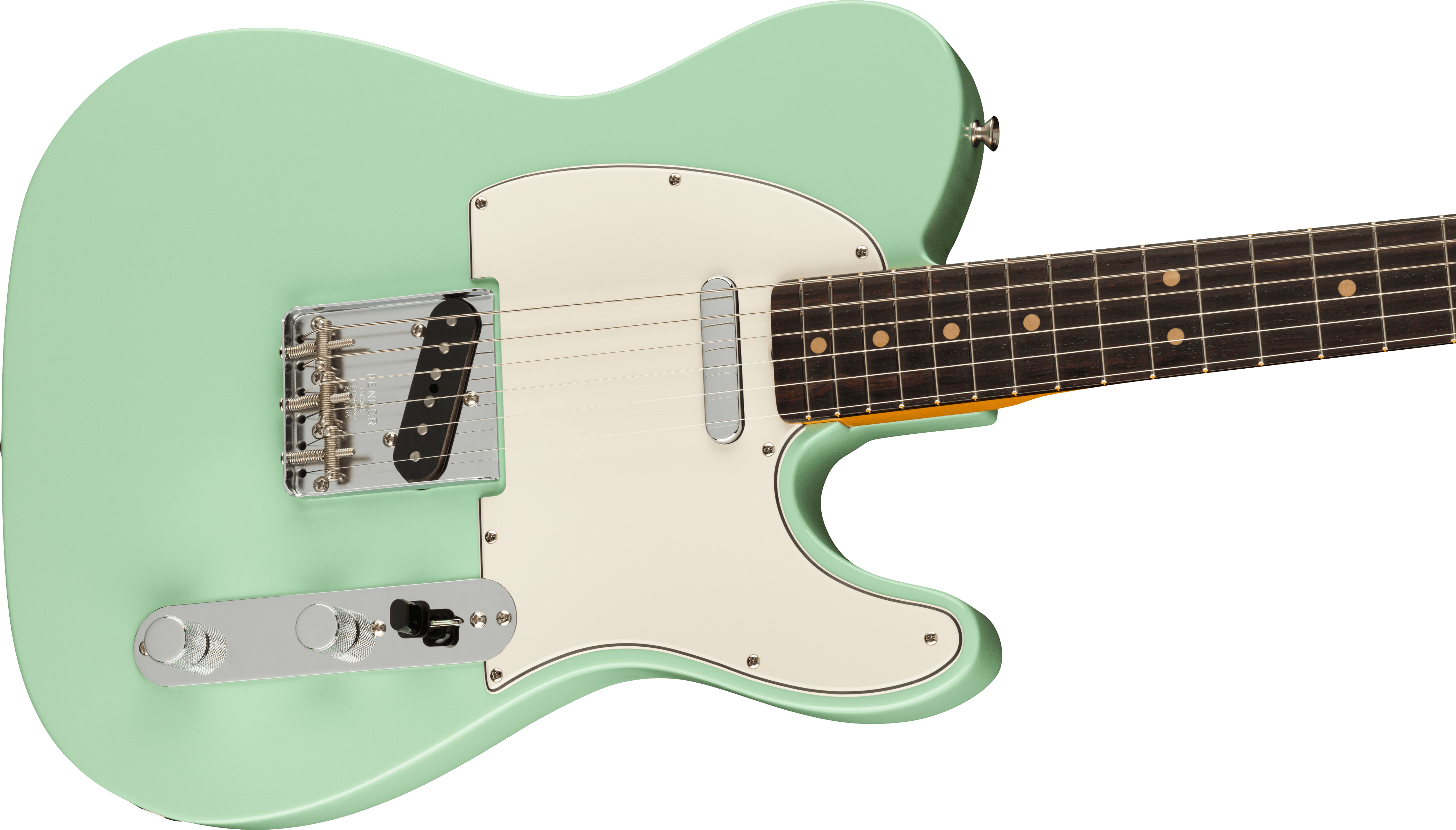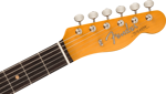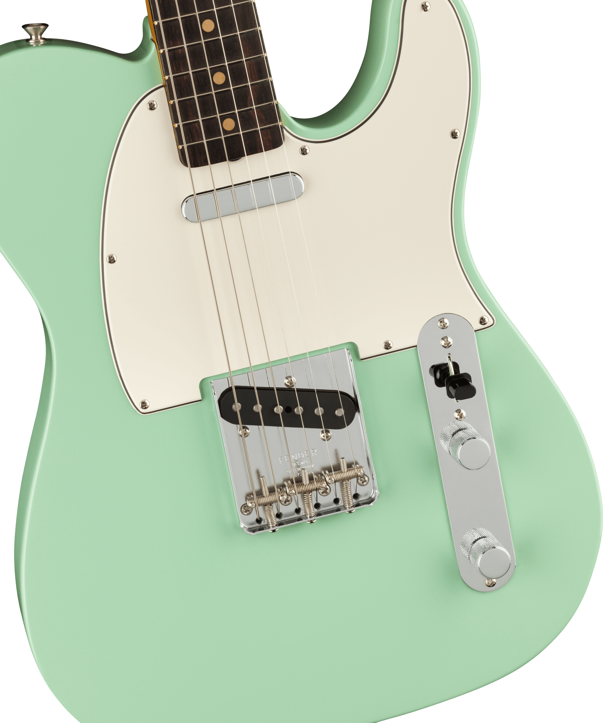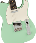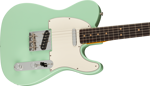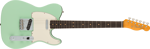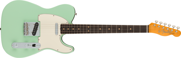 By 1963, a new combination of tonewoods married the punch and focus of alder with the warmth added by a round-lam rosewood fingerboard, enhancing the signature Tele twang. Featuring Pure Vintage ‘63 Telecaster pickups, triple threaded-steel saddle bridge and a comfortable “C”-shape maple neck, the American Vintage II 1963 Telecaster reproduces the quintessential tone and feel of the original. Characteristic of production in 1963, this Tele features clay dots (narrow-spaced at the 12th fret), a 7.25” radius fingerboard fingerboard and is offered in three colors: Crimson Red Transparent over mahogany and 3-Color Sunburst or Surf Green over alder.