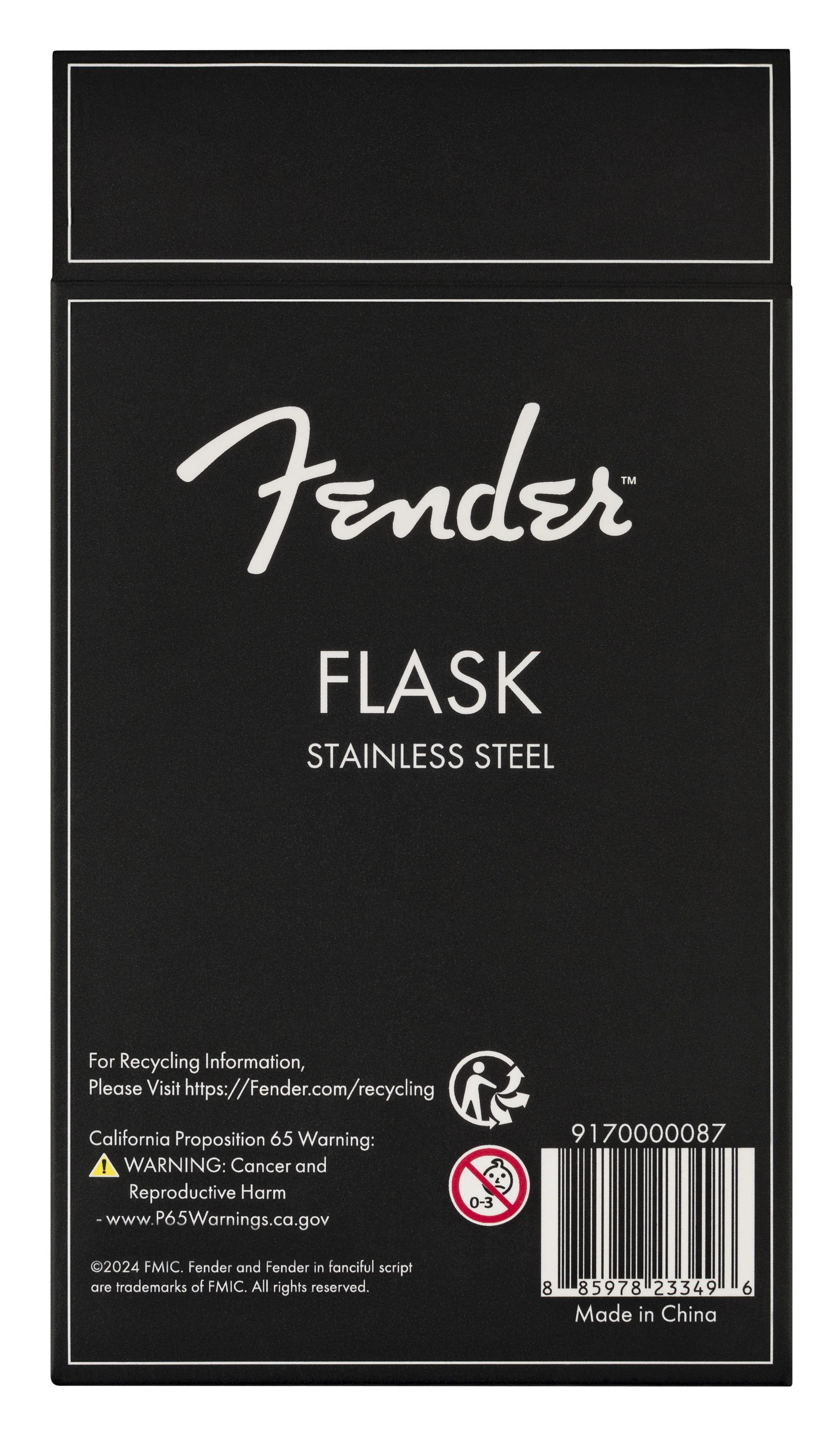 - Lommelerke preget med svart Fender-logo