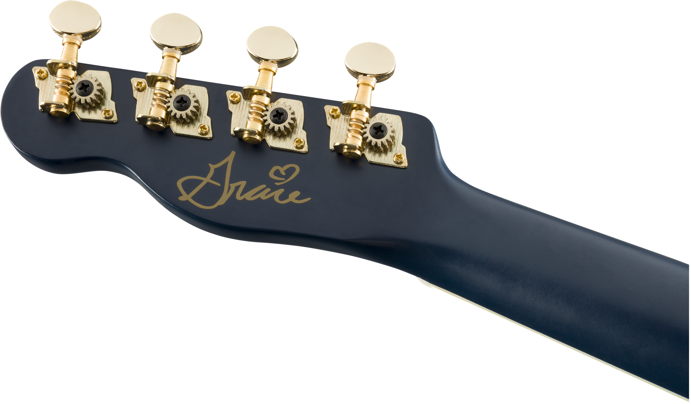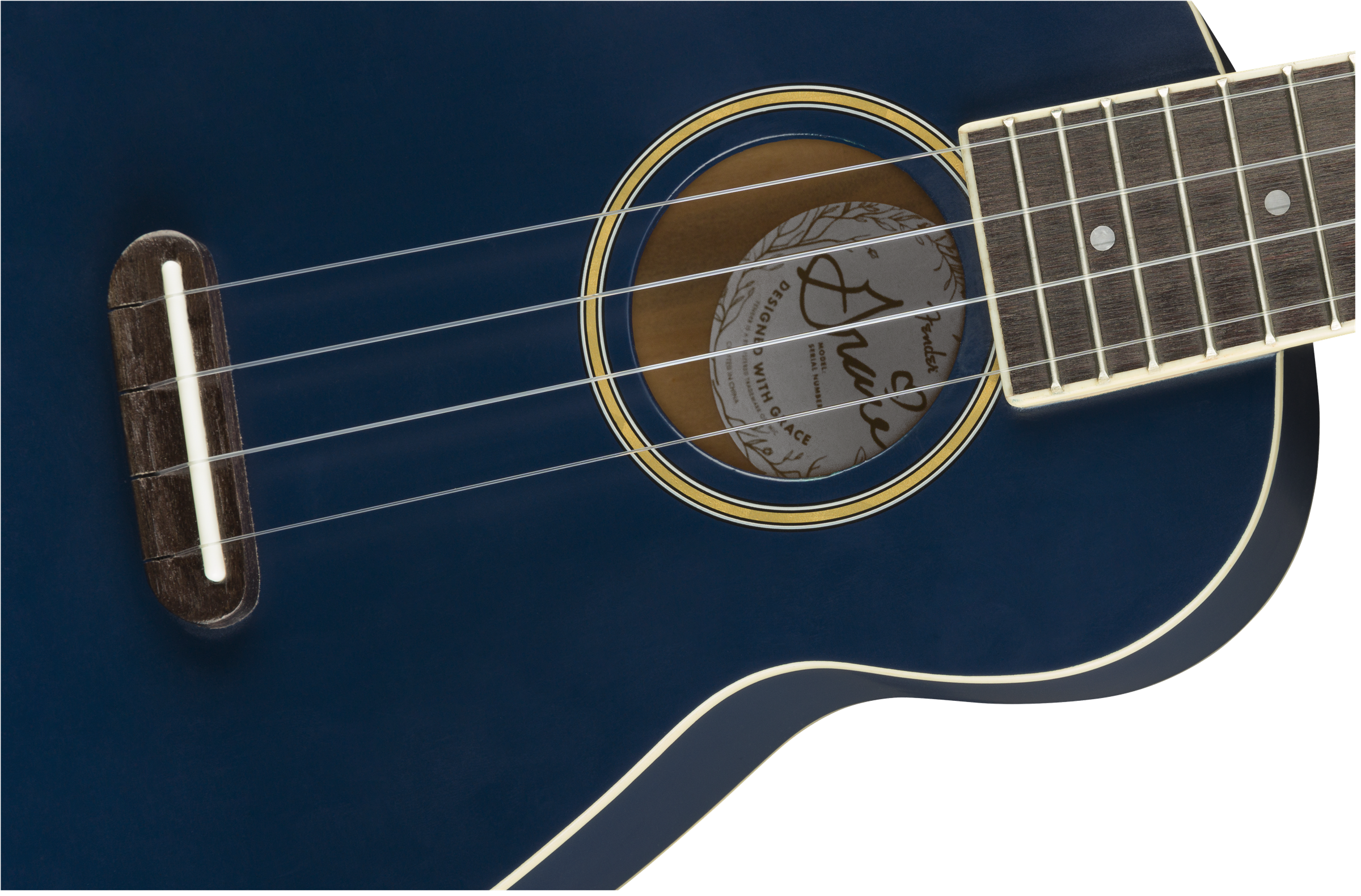 Inspired by the soprano ukulele that accompanied Grace VanderWaal as she learned to play, the Grace VanderWaal Moonlight Soprano Ukulele is a marvelous introduction to this easy-to-play instrument. With its comfortable smaller body, enticing sound and stage-ready features, the Grace VanderWaal Moonlight Soprano Ukulele is the perfect partner for her music. Reflecting Grace’s “Boho Chic” style, this ukulele features an elegant, stylish Navy Blue satin finish, gold sparkle rosette, gold hardware, custom floral soundhole label inspired by the album art from her debut release, Just The Beginning, and Grace’s distinctive heart signature adorning the back of the headstock.