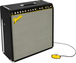 - Tilpasset canvas-trekk og to-knapps gul reverb/tremolo-fotswitch med sidemontert kabel inkludert