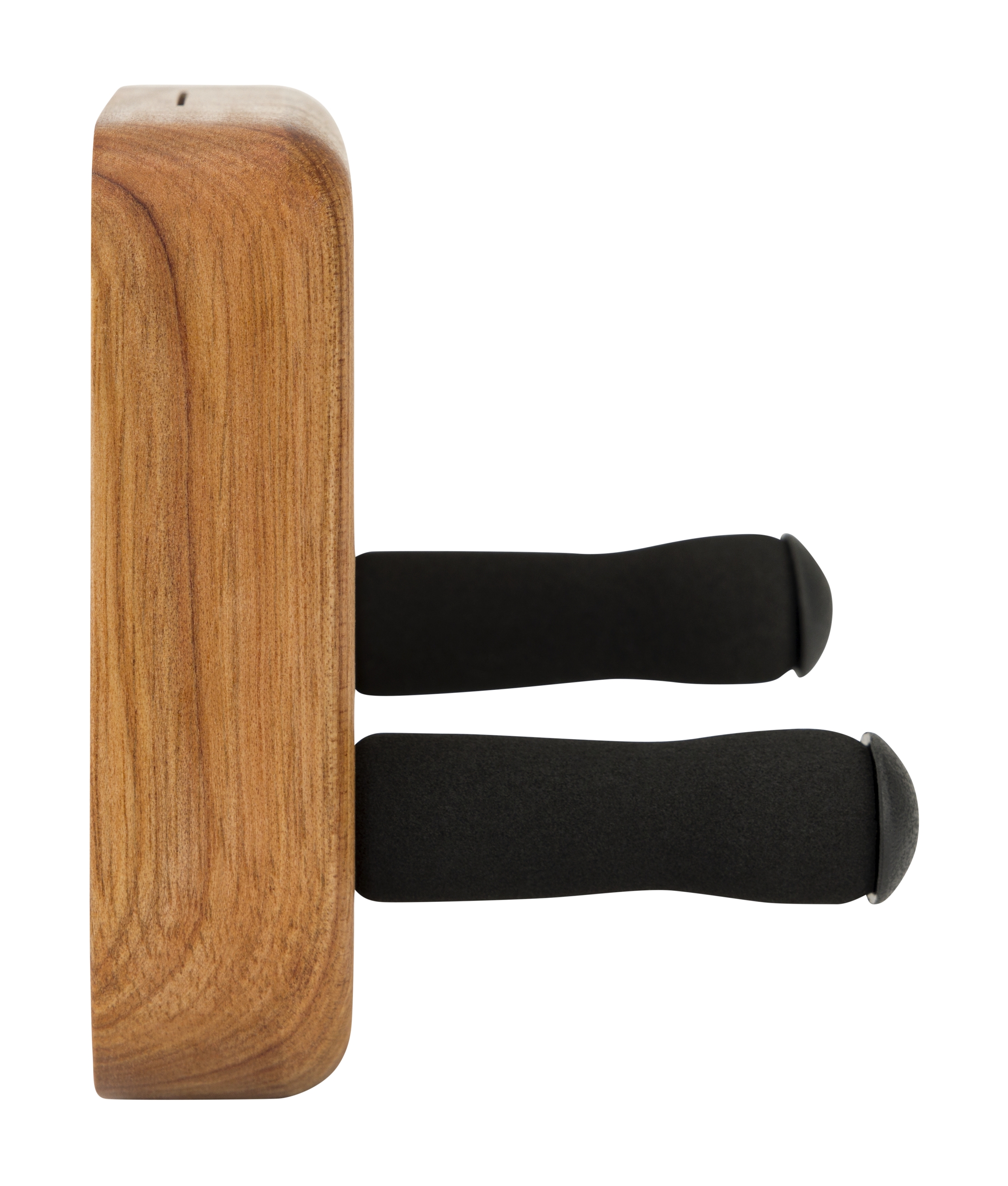 Laget av tre med mahogni-finish, har dette unikt formede opphenget offset-dowels som lar gitaren din henge sikkert. Designet for å sikre rett oppheng, er offset-dowels plassert presist i henhold til formen på gitarens hode. Dette særpregede gjør også at instrumentet ditt henger nærmere veggen enn ved bruk av standard gitarhengere, og gir illusjonen av svevende oppheng som sømløst integreres i rommet ditt.
