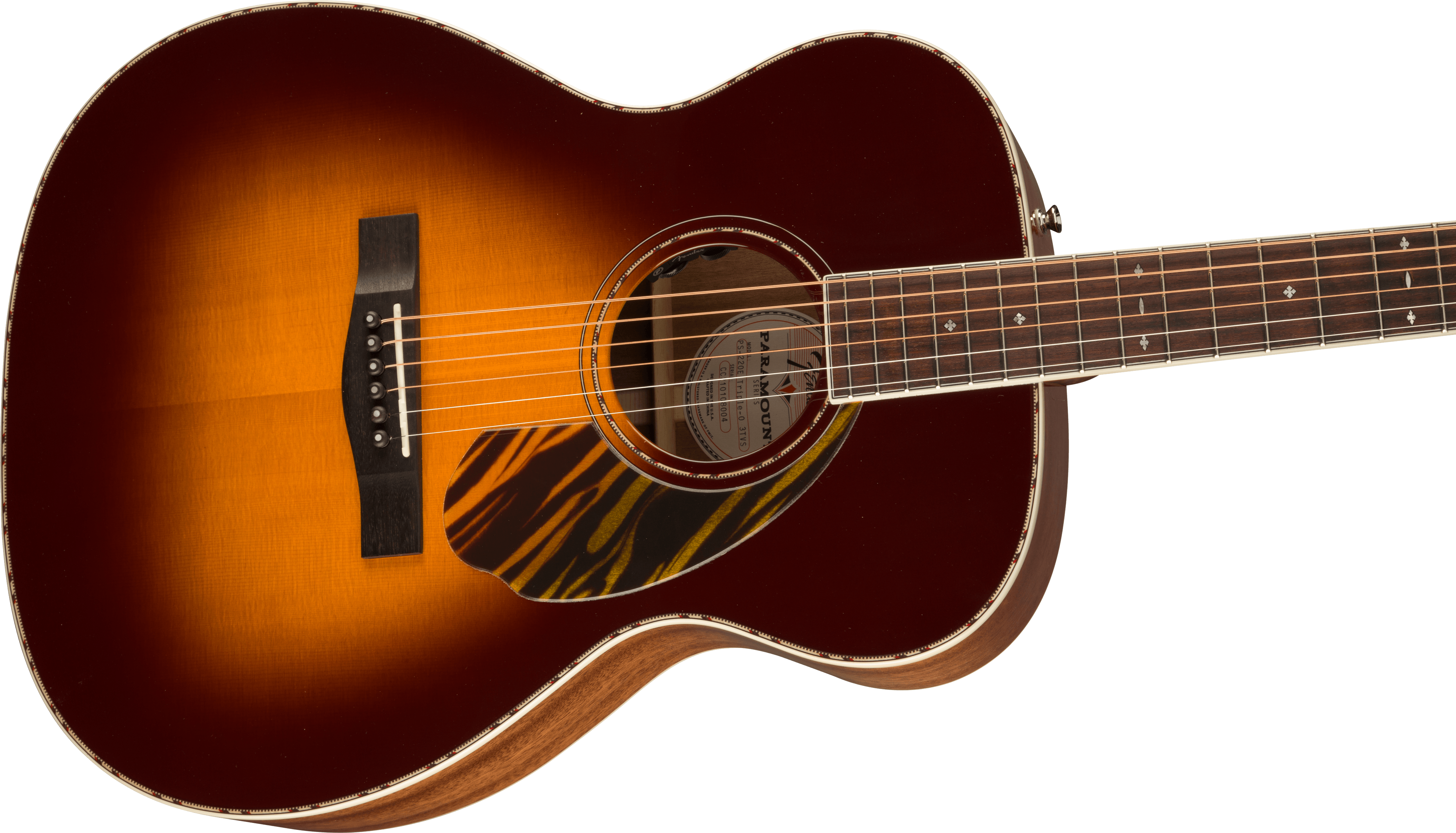 The Paramount PO-220E combines state-of-the-art craftsmanship with vintage-inspired appointments, delivering the best of both worlds. Built with the choice of a solid spruce or solid mahogany top paired with solid mahogany back and sides, the PO-220E features an offset X-bracing pattern that has been carefully refined to optimize resonance and tone. A Fender and Fishman®-designed pickup amplifies the warm, mid-focused tone of the PO-220E’s newly designed orchestra body shape, while the soundhole-mounted controls preserve the vintage aesthetics. Under the top, a body-sensing pickup enhances the soundboard's vibrations which can then be blended with the undersaddle Sonicore pickup.