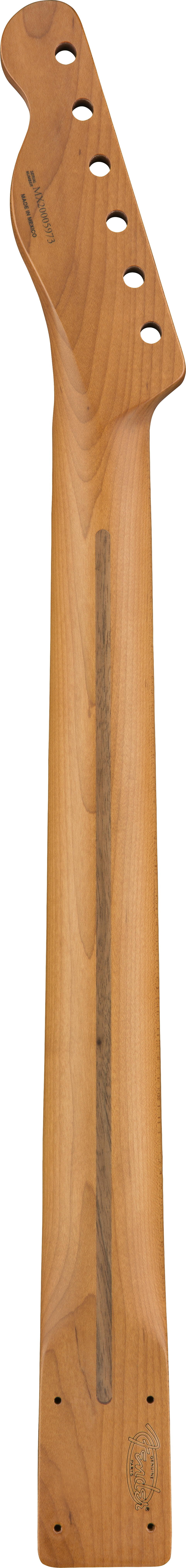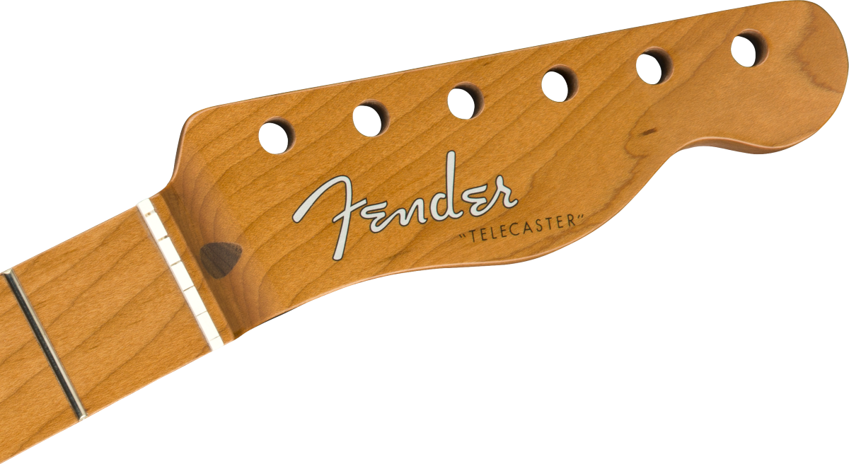 This genuine Fender Telecaster neck is crafted at our Ensenada, Mexico manufacturing facility. Featuring a vintage style “soft V” neck profile and 9.5"-radius maple fingerboard with 21 medium jumbo frets, for modern playing feel. The synthetic bone nut is pre-slotted with "pilot" grooves for accurate spacing when filing the final string slots. The perfect way to give your Strat® authentic Fender feel, this replacement neck even sports our famous “spaghetti” logo on the headstock.