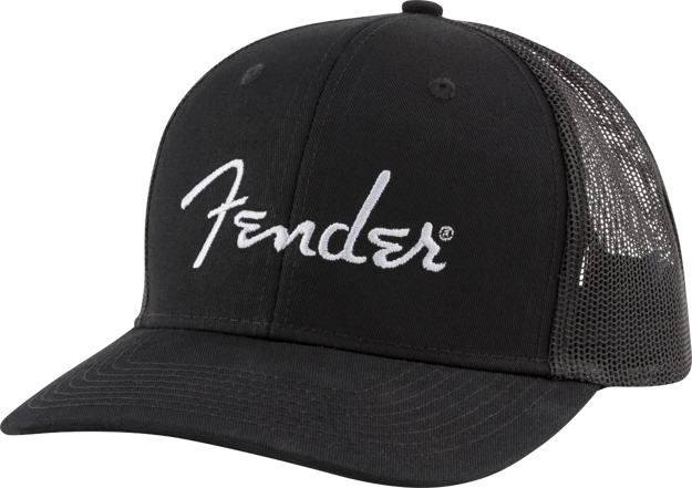 Fender Silver Thread Logo Snapback Trucker Hat with 3-D embrodiery. This hat will make you feel like a true Fender Rock-Star.