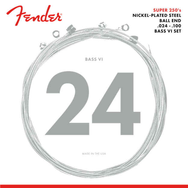 Fender Super 250's strings combine the high output and dynamic sound of steel with the smooth feel of nickel. These versatile ball-end string sets are ideal for any type of music. Specifically optimized for the Bass VI model’s longer scale length, these strings feature better feel and enhanced tone.