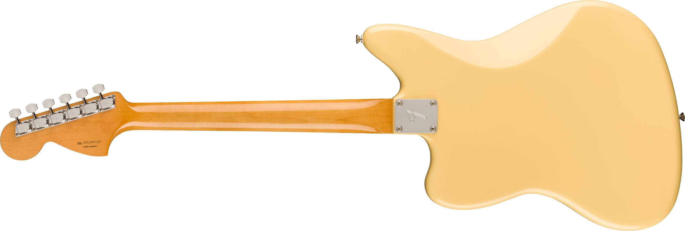Vintera II '70s Jaguar har en kropp i or og en lønnehals for den klassiske Fender-tonen som er full av trøkk og klarhet. Den sene 70-talls "C"-formede halsen gir et komfortabelt kjent grep som føles akkurat riktig i hånden din, mens gripebrettet med 7,25" radius og vintage-høye bånd gir vintage komfort med god plass for store bøyninger og uttrykksfull vibrato. Svarte blokker og binding legger til en førsteklasses følelse og utseende med en distinkt 70-talls stil. Under lokket finner du et par vintage-stil tidlige '70s single-coil pickups som leverer all den søte og gnistrende, varme og treholdige tonen som gjorde Fender berømt. Den vintage-stil flytende tremoloen lar deg dykke og jamre deg med overgivelse, mens vintage-stil stemmingsskruer gir et klassisk utseende med en finere girforhold og forbedret stemmingstabilitet for å fullføre pakken.