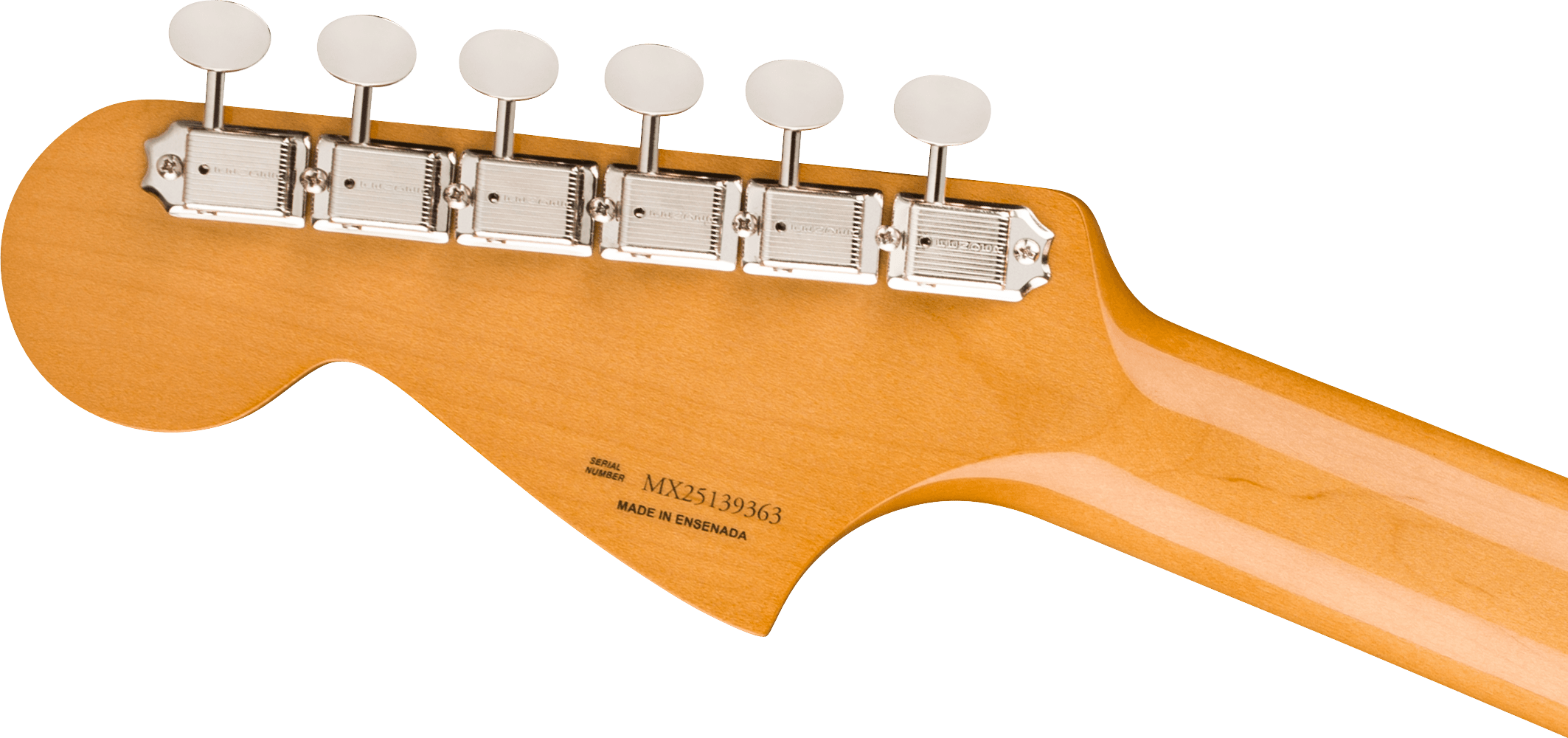 En vintage-style flytende tremolo med tremololås gir uttrykksfull vibrato, mens vintage-style stemmeskruer og klassisk Jaguar-hardware bidrar til stabil stemming og autentisk estetikk.