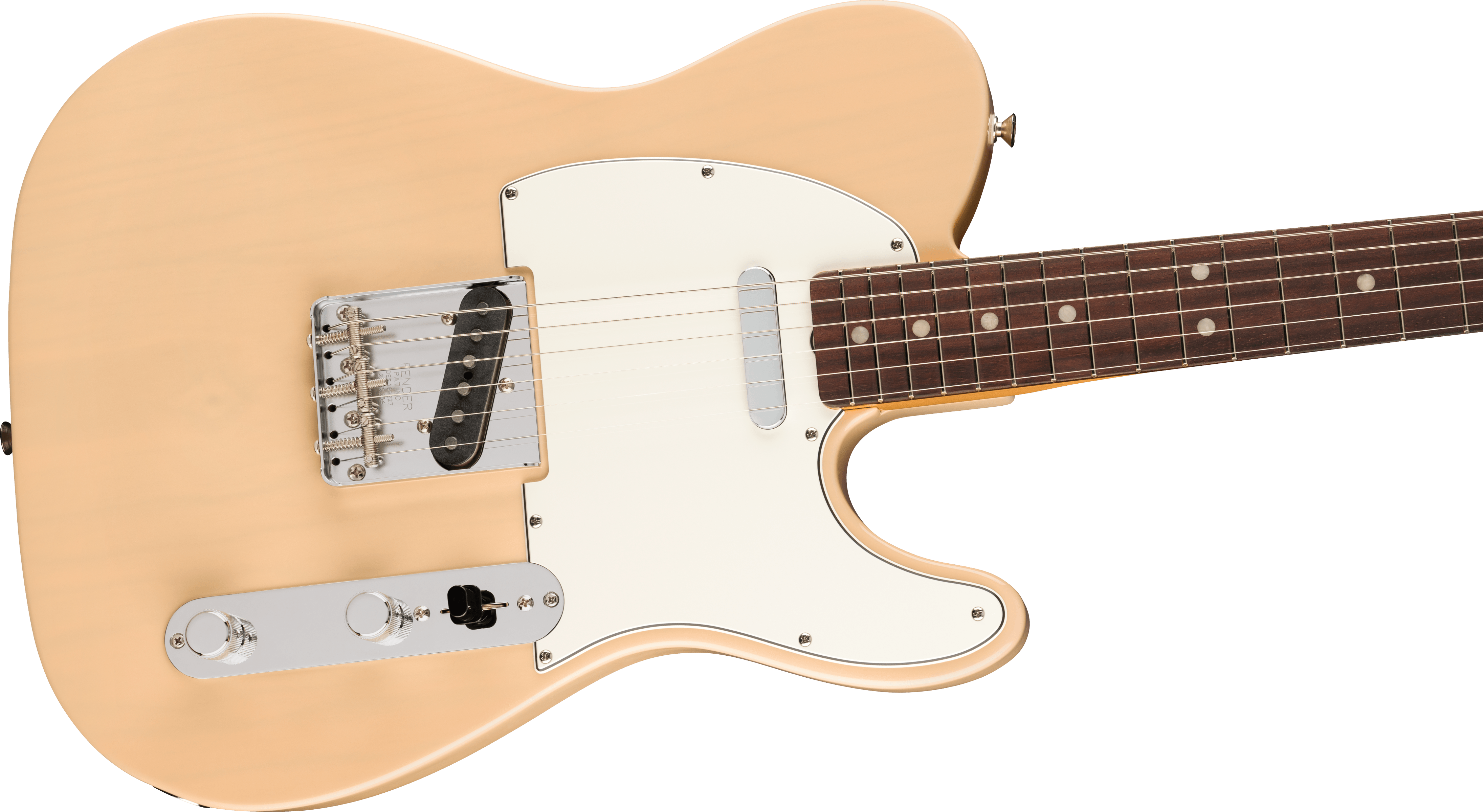 Lyden kommer fra to vintage-style Telecaster-pickuper spesifisert etter midt-60-talls standard. Disse leverer den lyse, skjærende og presise Telecaster-tonen som gjorde Fender berømt – med tydelig twang, klar definisjon og dynamisk respons.