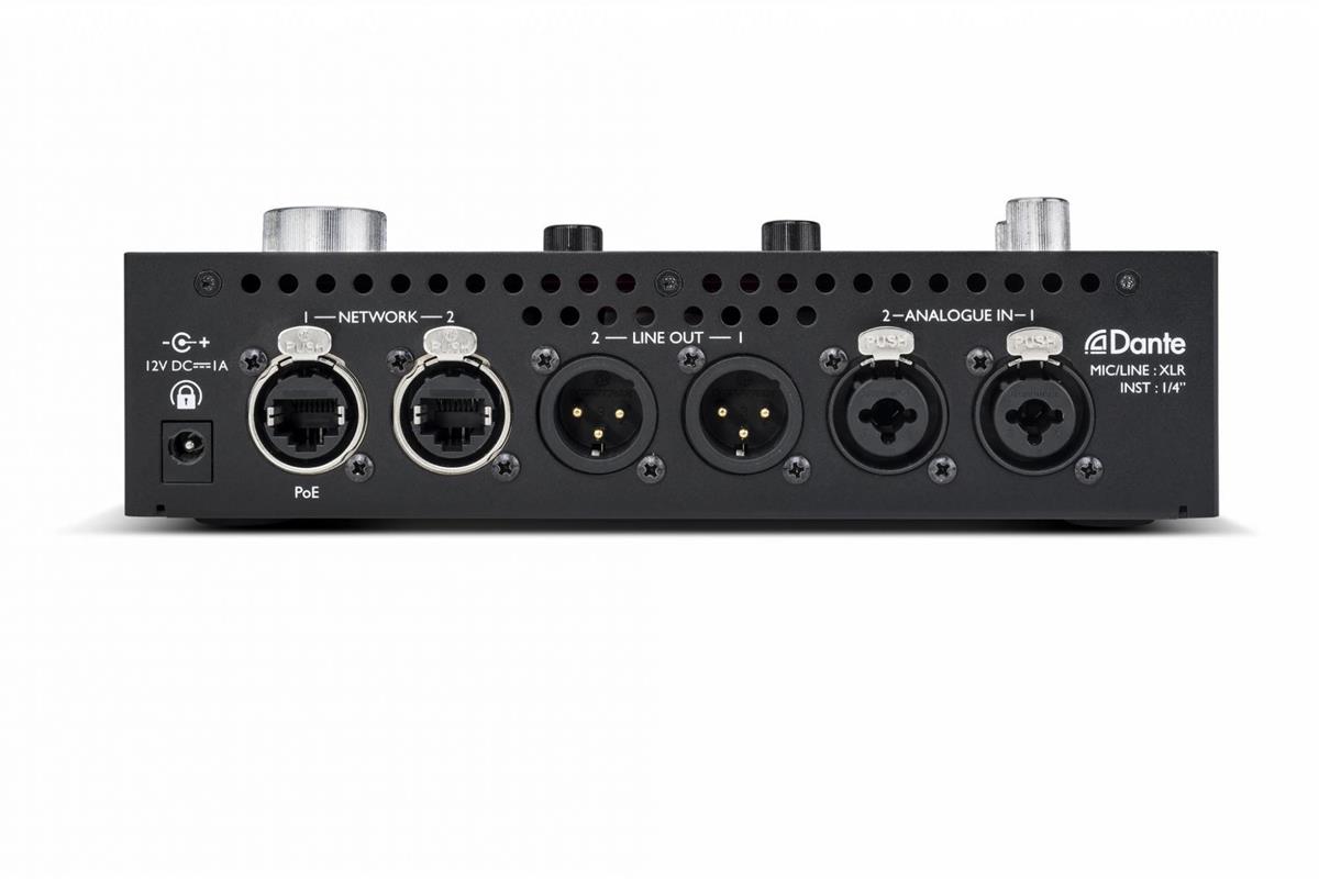 • Stereo 2x2 audio interface for Dante Audio-over-IP networks