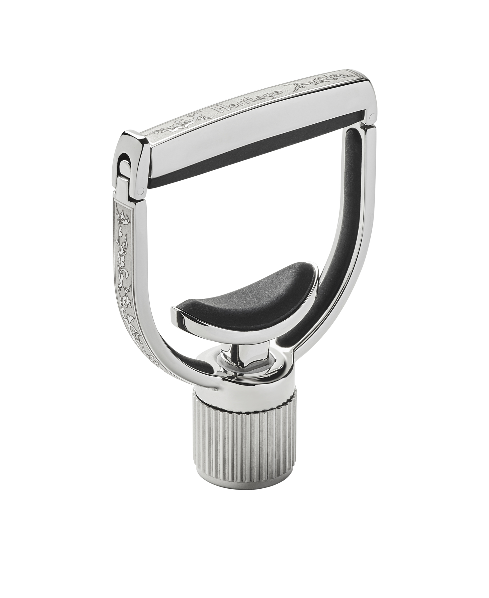 Our flagship capo - this traditional yoke-style capo with full Acanthus engravings for standard neck banjos is made from hand-polished stainless steel and fitted with ART® for maximum tuning stability with the minimum tension required. Heritage capos are available for banjos in two neck widths (standard and wide) and with a variety of engraving options.