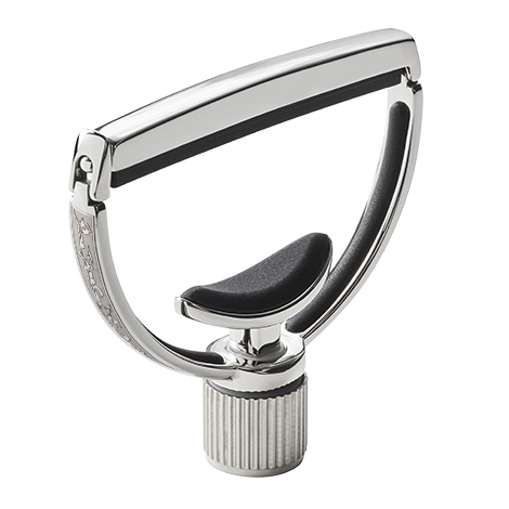 Our flagship capo - this traditional yoke-style capo with Acanthus engravings on the sides, is made from hand-polished stainless steel, fitted with ART® for maximum tuning stability with the minimum tension required. Heritage capos are available for guitar in two neck widths (standard and wide) and come either in hand-polished Stainless Steel or 18kt Gold Plate and with a variety of engraving options.