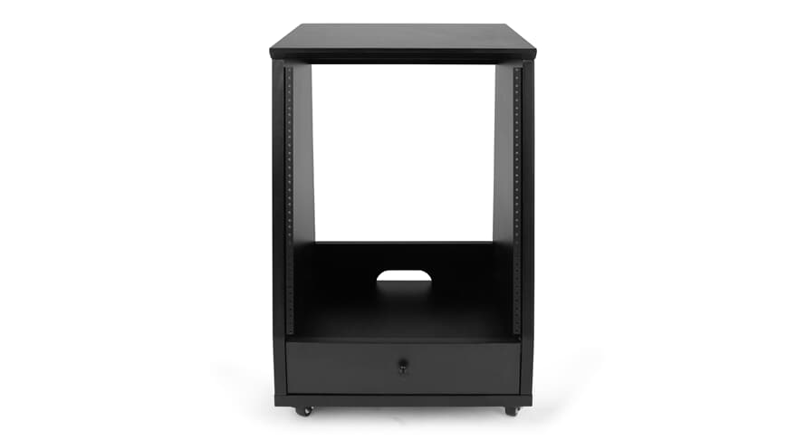 Elite Furniture Series 12U skrånende studiorrack med låser i svart finish
