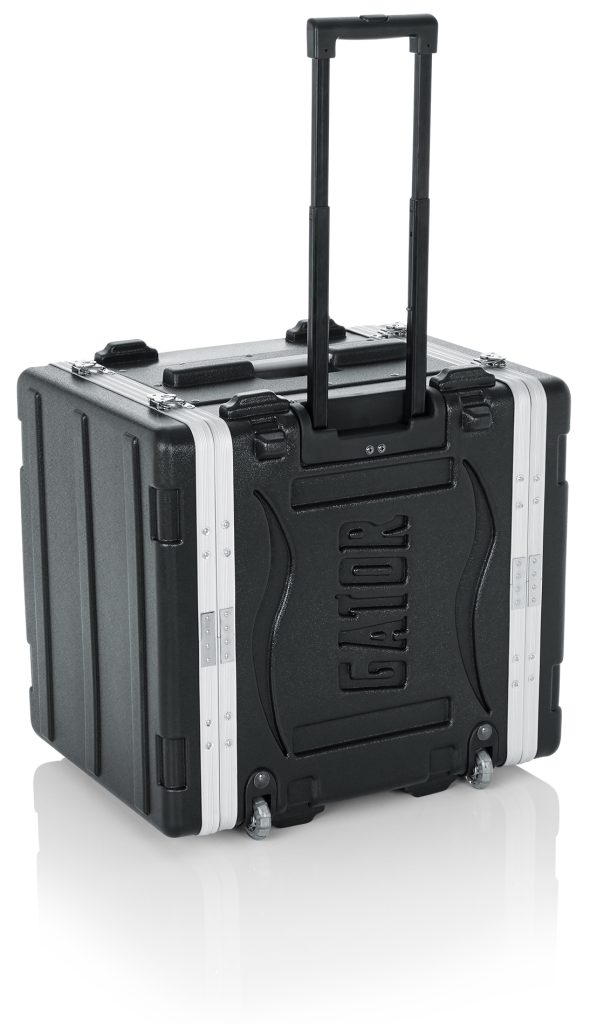 Moldet PE rackkasse; Front- og bakskinner; 8U; 19″ dyp; Låsbart, uttrekkbart håndtak, nedfelte hjul
