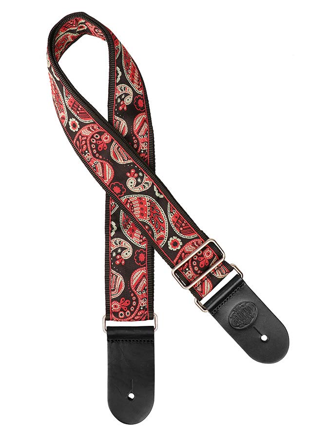 Gaucho GST-188-14 er en gitarreim fra Traditional-serien med 2" bred jacquard-vevd nylon i et fargerikt flerfarget mønster. Reimen har lærslips for ekstra holdbarhet og justerbar lengde, og passer til både el- og akustiske gitarer.